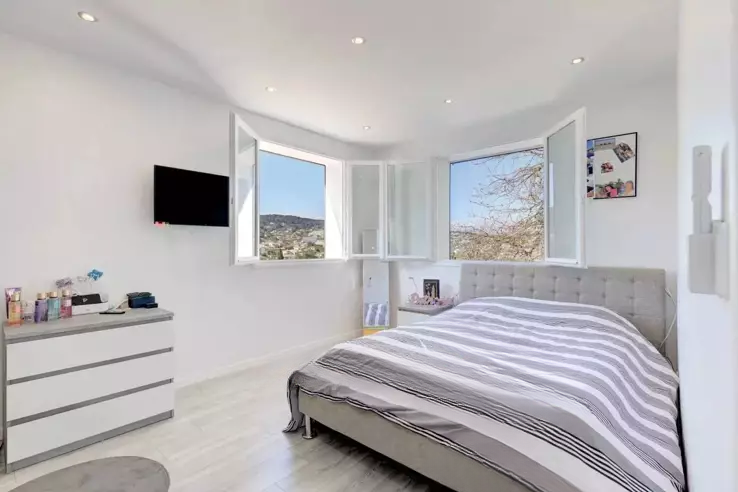 Эксклюзивное предложение - Близко к Канну. Расположенная в спокойном жилом районе, эта полностью обновлённая вилла площадью около 270 кв. м возвышается на участке 2 000 кв. м с бассейном. На основном уровне жизни находится гостиная, открытая на террасу площадью 100 кв. м, кухня американского типа, 2 спальни с ванными комнатами и гардеробная.