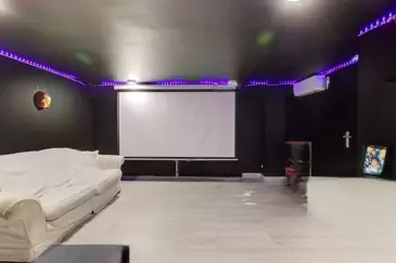 На этаже имеются 3 спальни и 2 ванные комнаты. На садовом уровне расположены 1 спальня, 1 душевая, кинозал и гостиная с кухней.