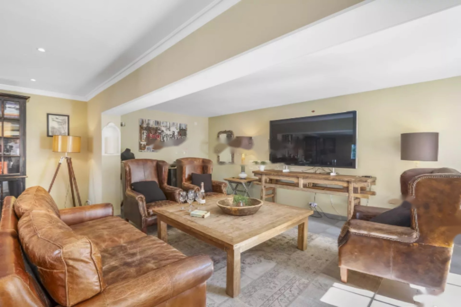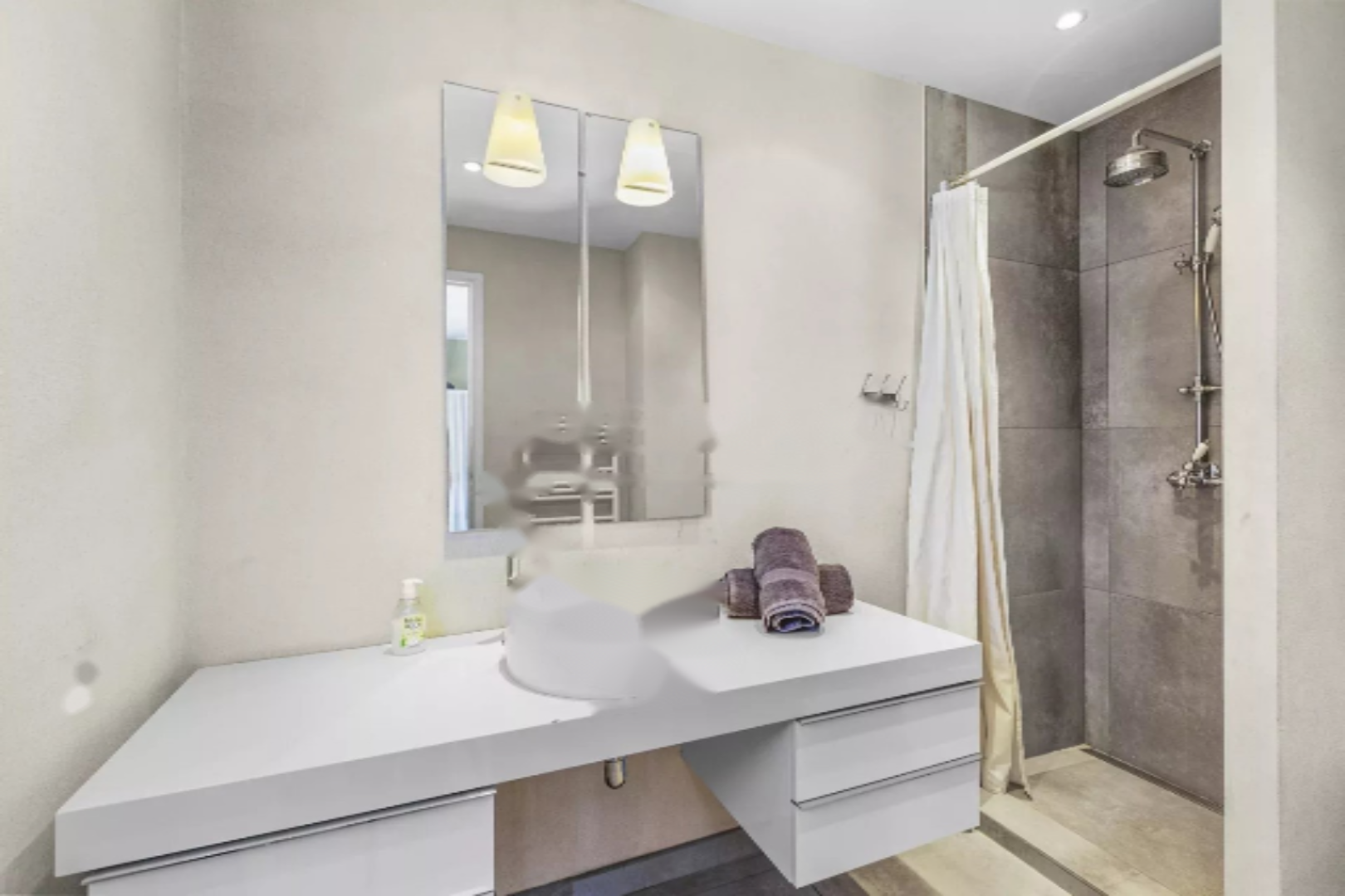 Спальная зона включает три спальни, каждая из которых имеет собственную ванную комнату или душевую, обеспечивая комфорт и уединение всем жильцам. Гостевой туалет дополняет этот ансамбль.