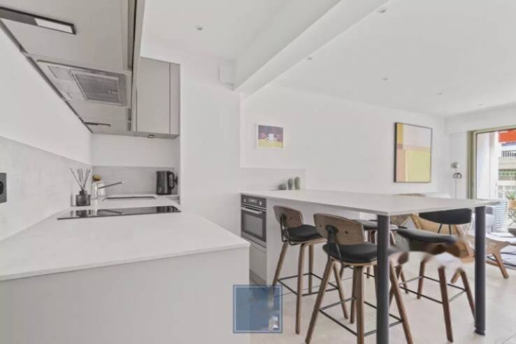 Гостиная открывается на красивую и уютную террасу, ориентированную на юг. Апартамент был полностью отремонтирован с использованием качественных материалов.