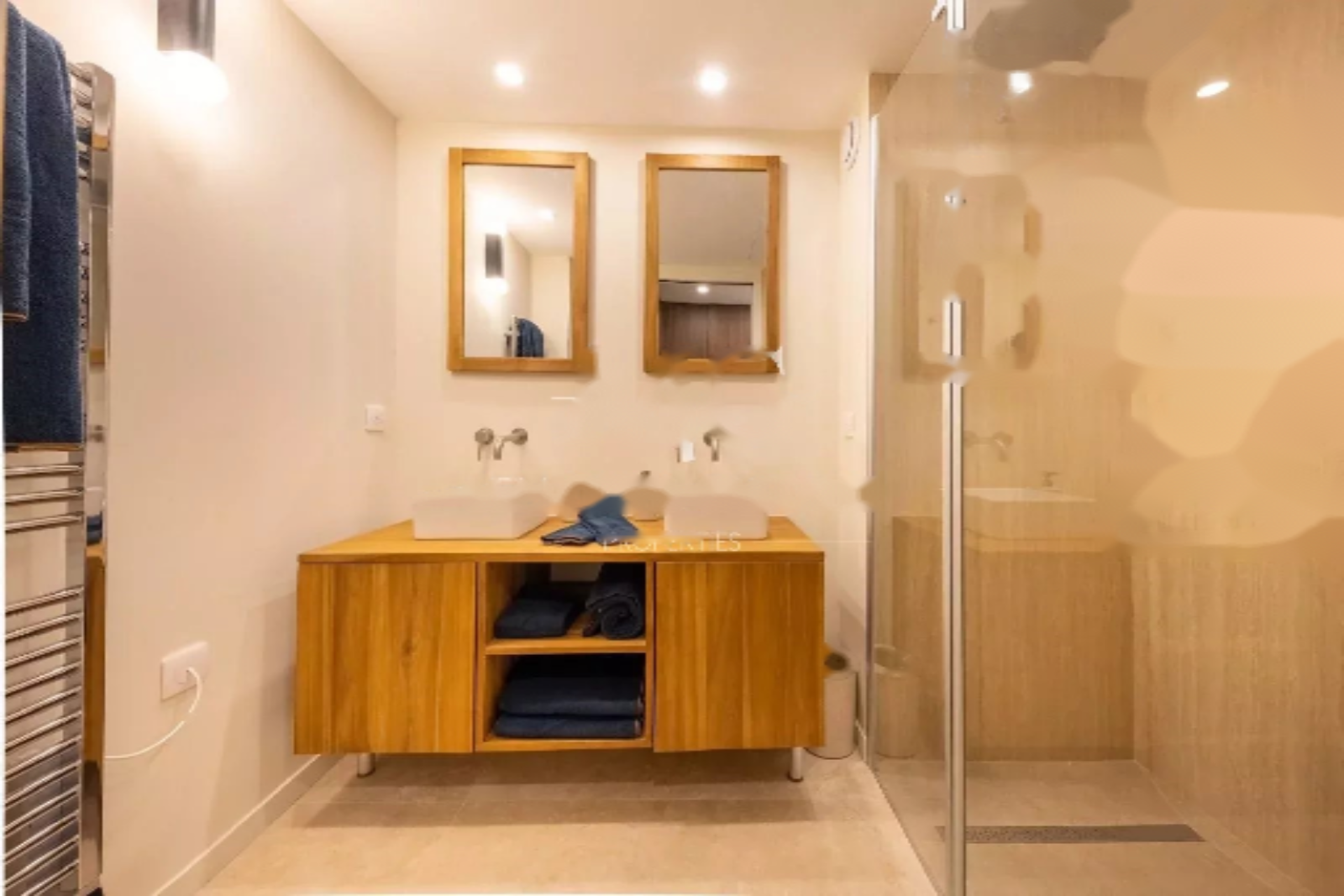 Терраса идеально подходит для наслаждения ласковым климатом и жизнью Канн . Полная реновация включает в себя обратные кондиционеры, двойное остекление и аккуратные отделки.