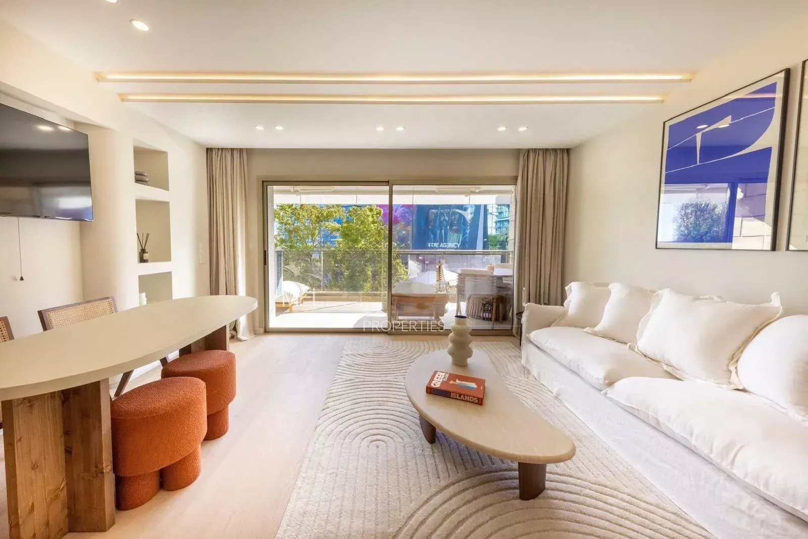 ✓ Светлая гостиная/столовая с выходом на просторную террасу с видом на Дворец фестивалей в Каннах.