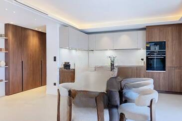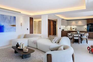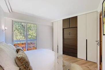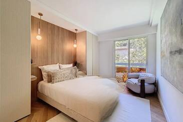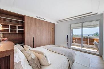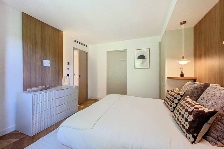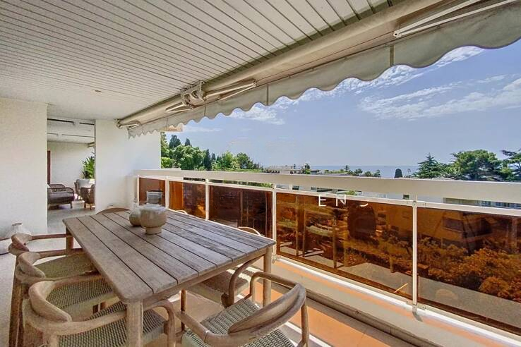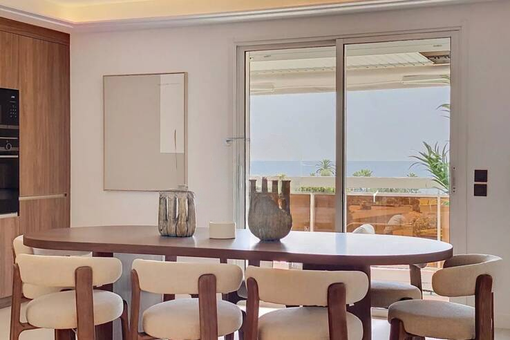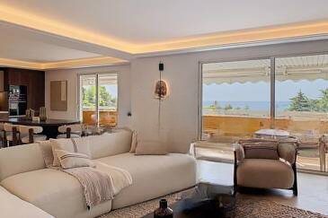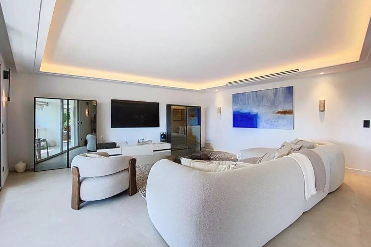 Полностью отремонтированная с использованием высококачественных материалов, она включает в себя холл, просторную гостиную, открытую на террасу площадью 32 м², родительскую спальню с видом на море и душевой, а также три других спальни, каждая с собственной ванной комнатой.