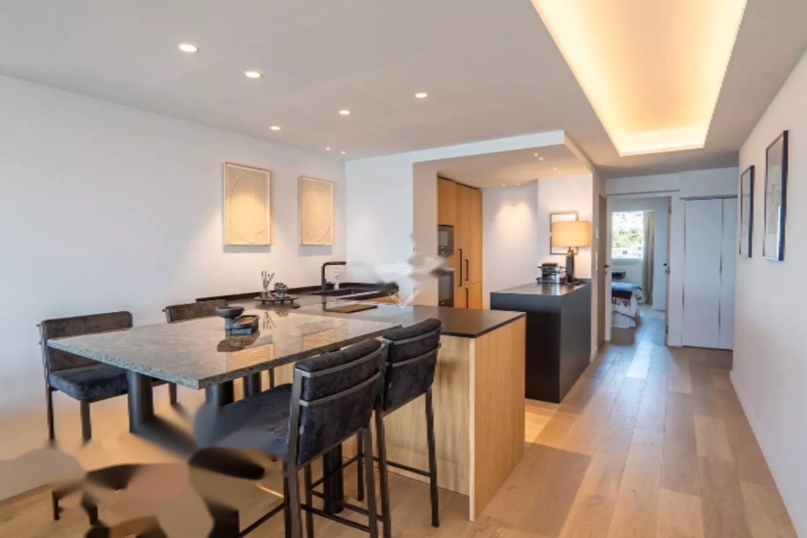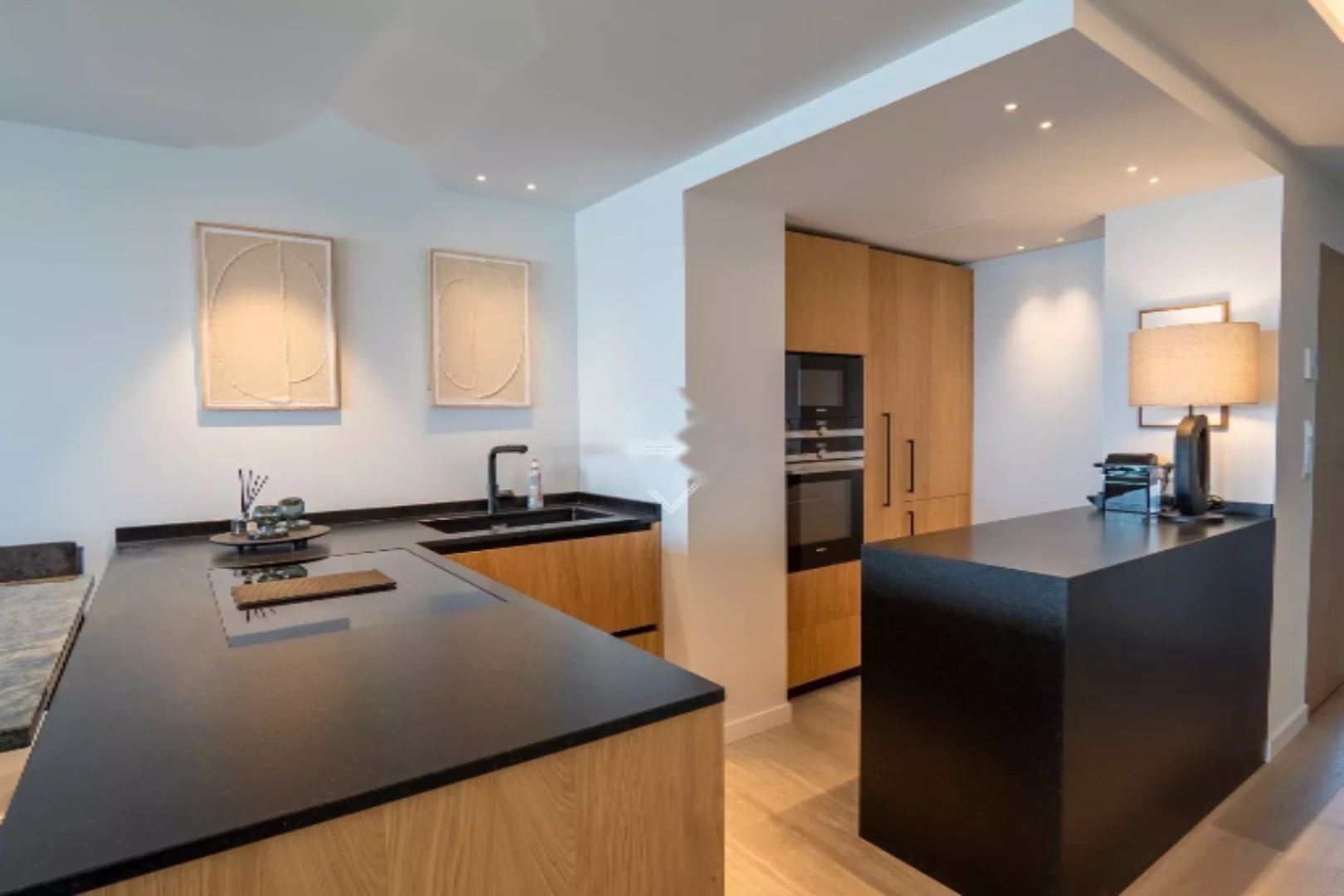 Общая площадь составляет 84,61 м² по закону Каррез (89,06 м² в общей сложности). Включает в себя просторную гостиную с американской кухней, выходящей на южную террасу площадью 11,72 м², с которой открывается шикарный вид на море. Спальная зона состоит из главной спальни с ванными комнатами и многочисленными гардеробными, второй спальни с прилегающей душевой комнатой, а также отдельного помещения для хранения.