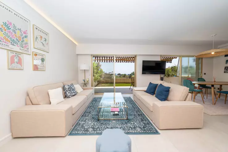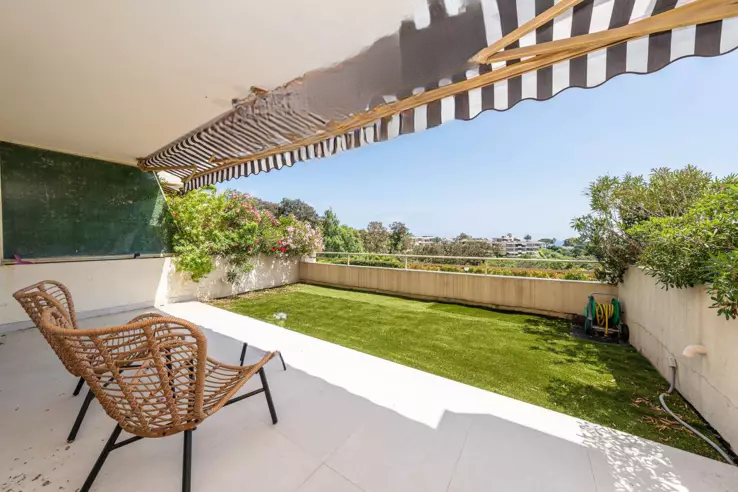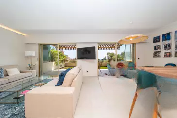 В одной из самых красивых резиденций в районе Croix des Gardes, в абсолютной тишине и среди парка с бассейном, находится красивый полностью отремонтированный апартамент с качественной отделкой. Апартамент располагает просторной террасой и садом на крыше с прекрасным видом на зелень и немного на море. Просторная гостиная комната с оборудованной американской кухней, главная спальня с гардеробной и душевой комнатой, вторая спальня с душевой. Подземное парковочное место и подвал.