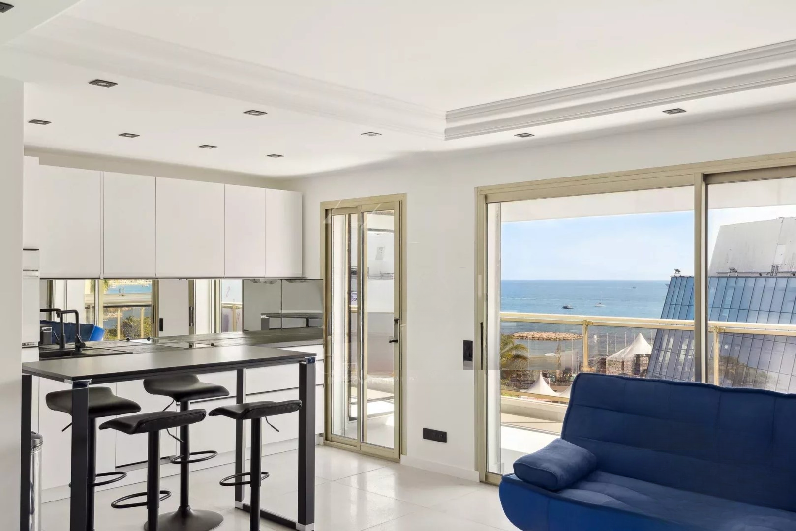 В охраняемой резиденции напротив Дворца фестивалей предлагается великолепная квартира на шестом этаже с захватывающим видом на бухту Канн и острова Лерин. ️ Квартира полностью отремонтирована, площадью 54 м². Она включает светлую и просторную гостиную, полностью оборудованную открытую кухню, выходящую на красивую террасу, спальню около 12 м² с собственной душевой комнатой и туалетом, а также террасу площадью около 12 м², ориентированную на юг, чтобы наслаждаться полным солнечным светом . Подземный паркинг дополняет это предложение.