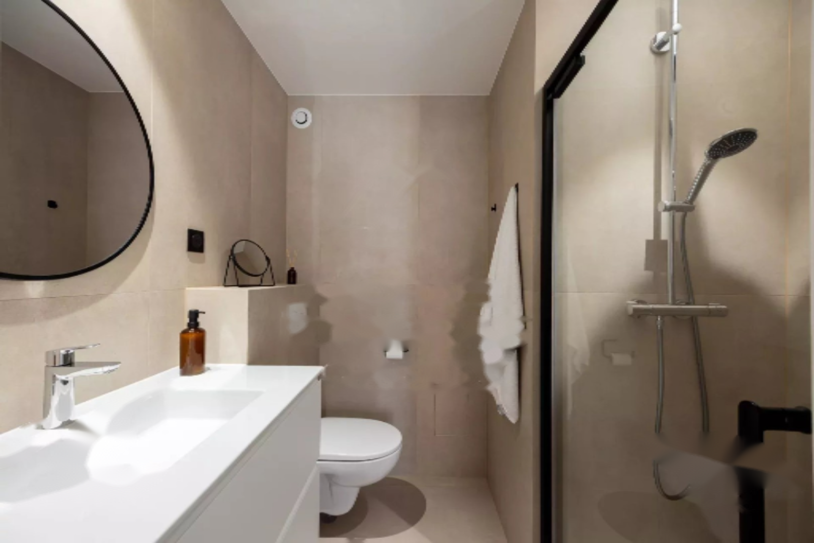 Она состоит из светлой гостиной, с гостиной, столовой и оборудованной кухней, двух уютных спален с собственными душевыми и туалетом для гостей.