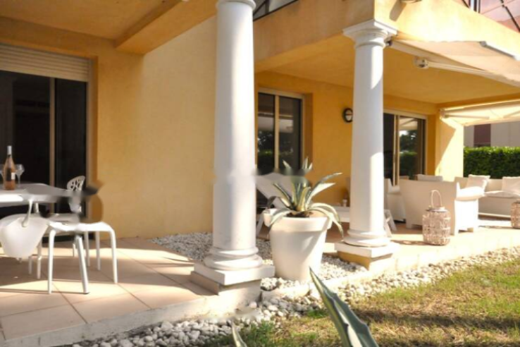 На уровне сада, квартира имеет просторную террасу и частный сад, что создает спокойную и комфортную атмосферу для жизни. Собственное парковочное место дополняет эту недвижимость. Внешние пространства позволяют полностью насладиться средиземноморским климатом и окружающим спокойствием.