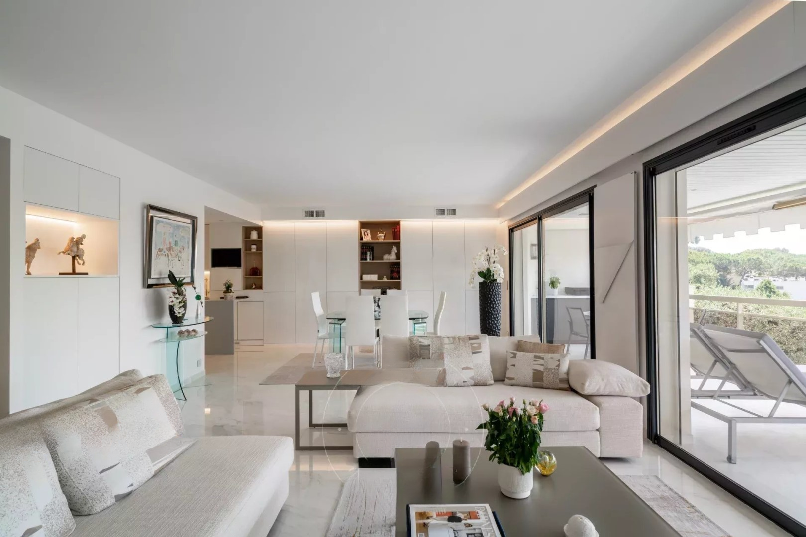 Le Cannet: В охраняемой резиденции с бассейном, эта красивая квартира площадью около 120 м² с видом на море, полностью отремонтированная с использованием качественных материалов. Она предлагает просторную светлую гостиную с двумя зонами, оснащенную кухню, смежную подсобную/прачечную, две спальни с ванными комнатами. Приятные внешние пространства элегантно дополняют жилые помещения.
