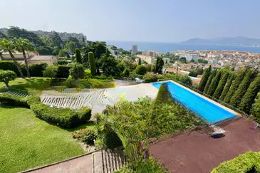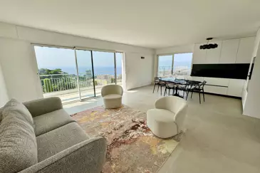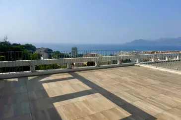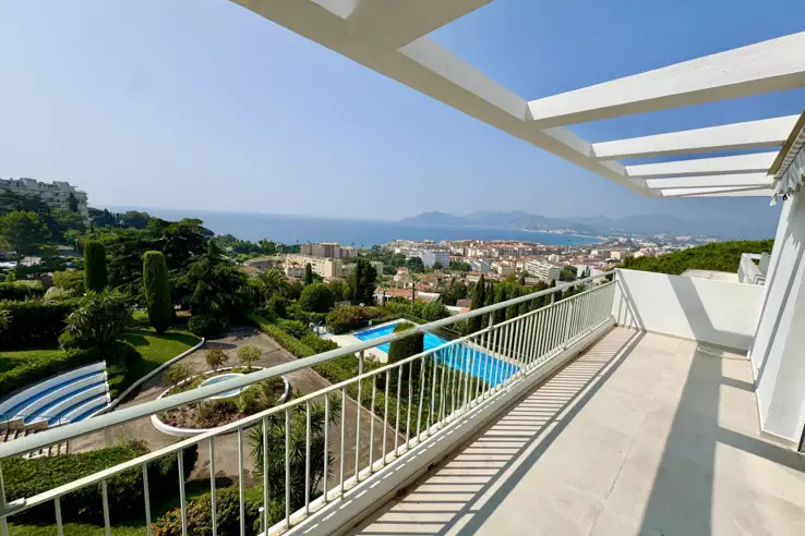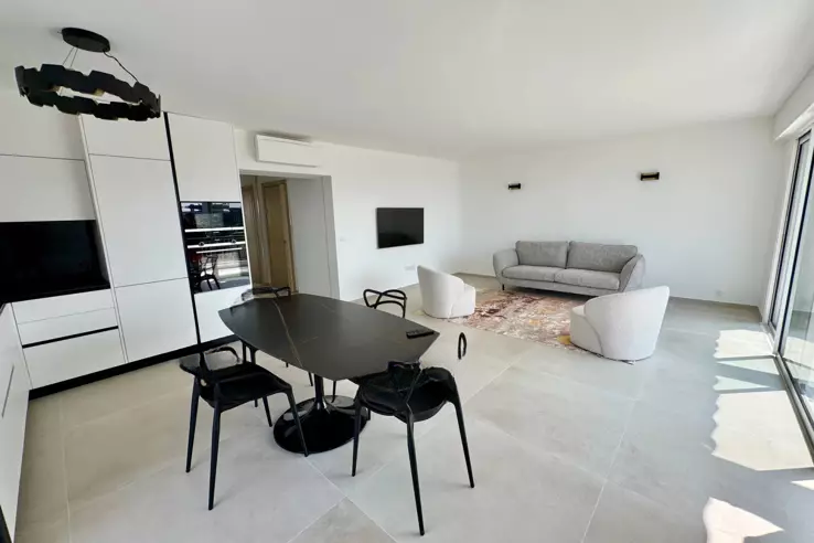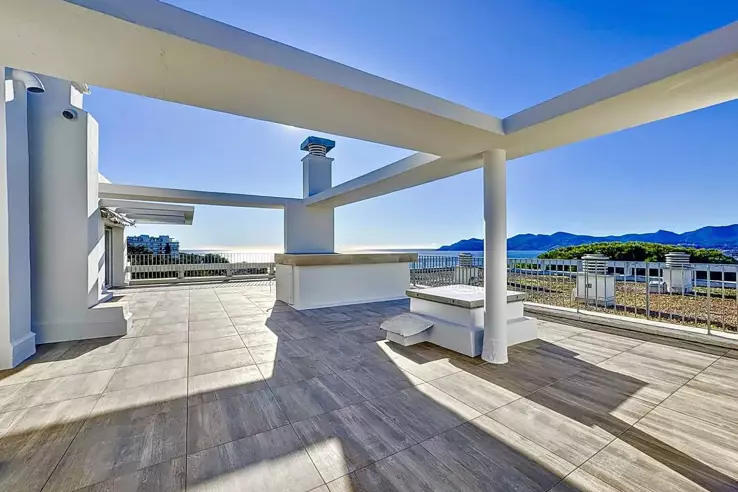 Канны, Croix des Gardes, в резиденции высокого класса с консьержем, бассейном, теннисом и парком расположен великолепный пентхаус с 3 комнатами и панорамным видом на море, в абсолютной тишине и всего в 5 минутах от центра города. ️ Кухня открытого плана и гостиная с выходом на террасу площадью 100 м².