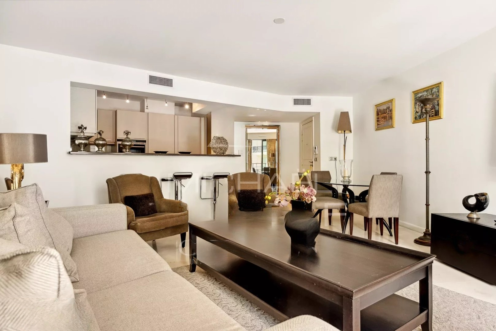 В Каннах, в центре города "банан", рядом с отелем Carlton, на тихой улице между Круазетт и улицей Антиб, этот великолепный апартамент идеально распределён и спроектирован.