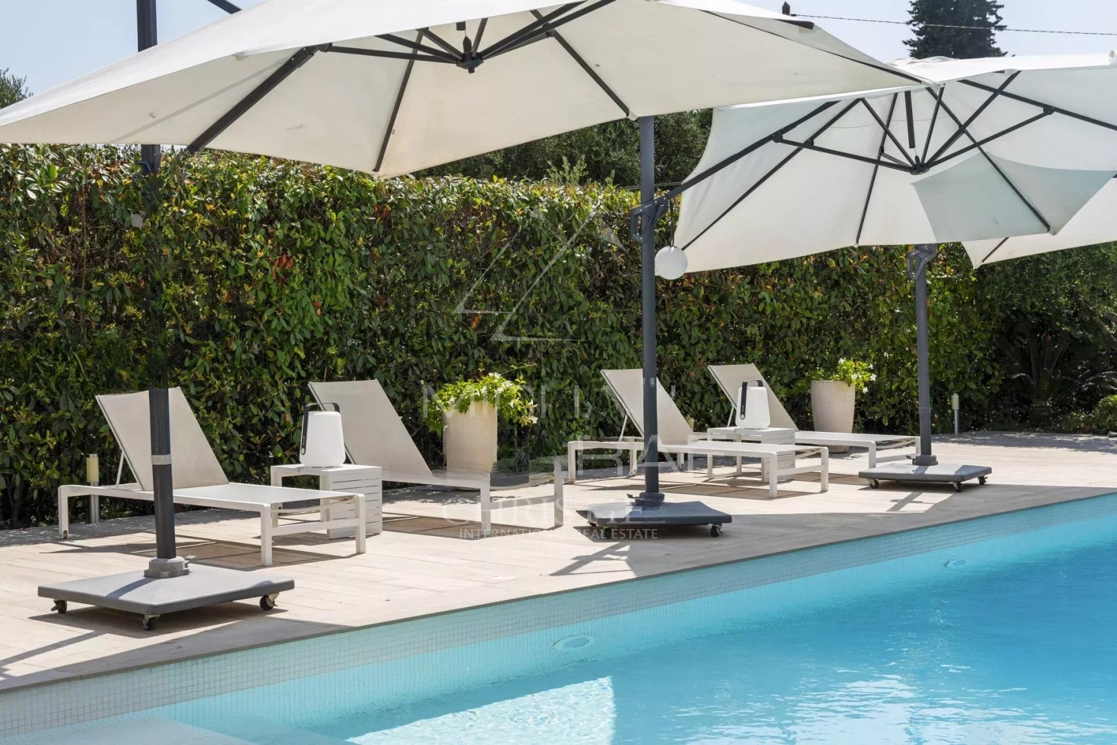 В очаровательной деревне Mougins эта приятная вилла, преимущественно на одном уровне, открывается на ровный сад с большим бассейном и красивой летней кухней. Сразу при входе солнечный двойной гостиный заливается естественным светом. Независимая кухня ведет на террасу, которую можно закрыть, что позволяет наслаждаться солнечными днями круглый год.