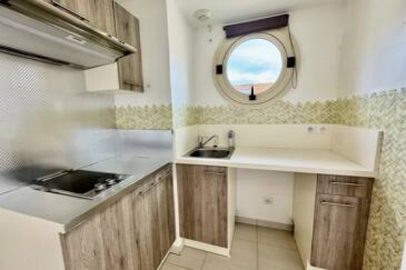 Канны, рядом с вокзалом. Всего в 300 метрах от Дворца фестивалей, в престижной резиденции 2015 года на последнем этаже находится светлая двухкомнатная квартира площадью 43 кв. м с выходом на красивую террасу. Полуоборудованная кухня, отличное состояние.