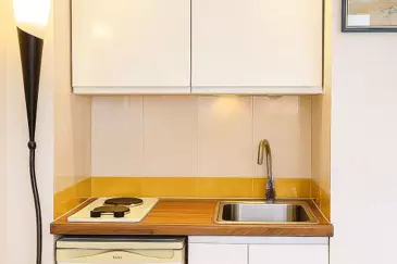 Объект включает в себя светлую гостиную с мини-кухней, выходящую на уютную террасу, идеально подходящую для спокойных обедов на свежем воздухе. Также имеется ванная комната с туалетом. ☀️ Небольшая солнечная терраса и прямой доступ к пляжам. Резиденция класса люкс с консьержем.