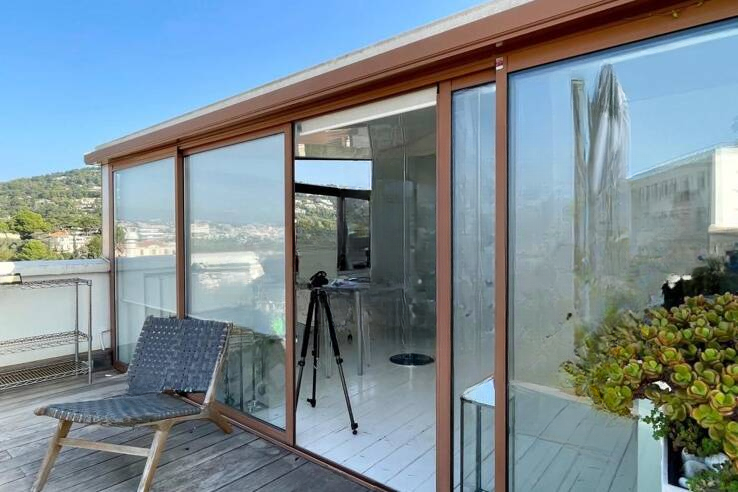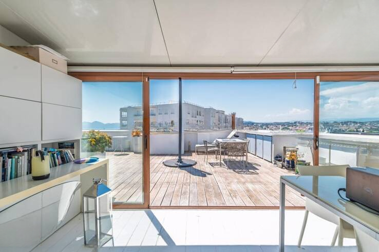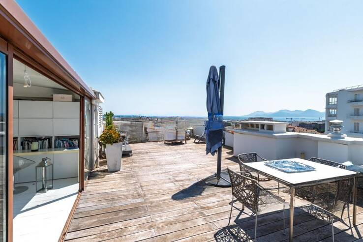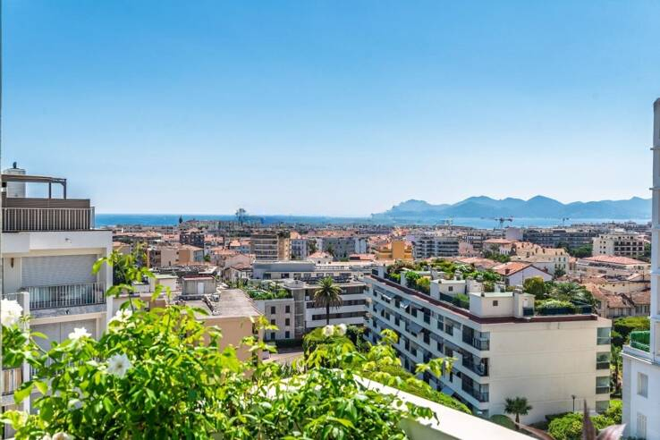 Дуплекс занимает два верхних этажа красивого здания 1940-х годов, расположенного в престижном районе Монфлёри и всего в десяти минутах пешком от центра Канн.