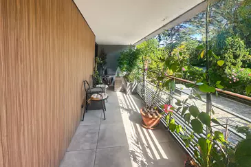 Все основные комнаты выходят на угловую террасу площадью около 30 м². Частная парковка в подземном этаже дополняет объект.