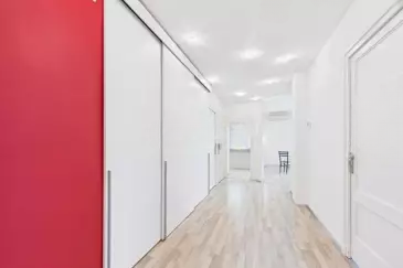 Сразу при входе вас встречает широкий коридор с множеством мест для хранения, который ведет в разные комнаты. Просторная и уютная гостиная открывается на протяженный балкон с видом на приятный зеленый пейзаж, идеально подходящий для спокойного отдыха.