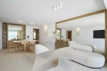 - Просторная гостиная/столовая с выходом на террасу площадью 16,5 м² с южной ориентацией и видом на море