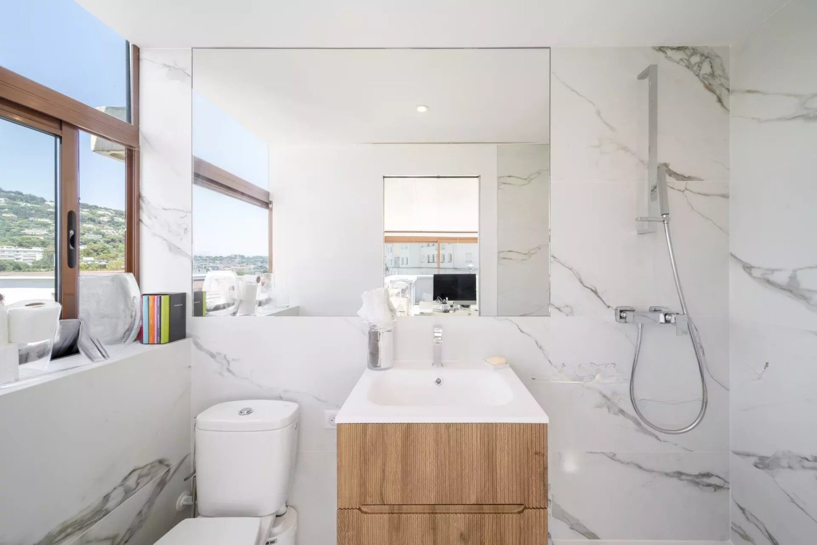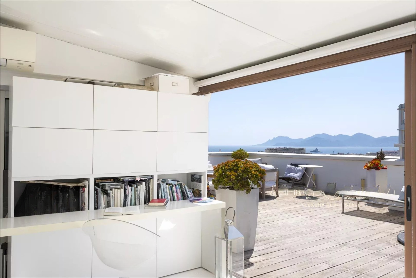 Апартамент выделяется своей приватной террасой на крыше площадью 60 м², настоящим подвесным оазисом, предлагающим исключительный вид: от архипелага островов Лерин до массива Эстерель, включая зеленые холмы Калифорнии. Потрясающая панорама, которую можно наслаждаться весь день, до самых зрелищных закатов.
