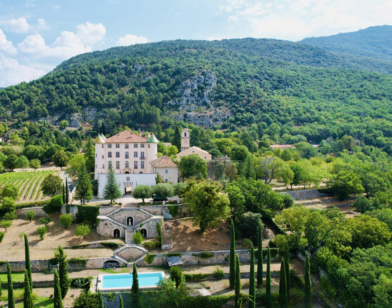 Кроме того, у замка есть множество пристроек, что дает возможность для реконструкции или расширения. Снаружи вас порадуют благоустроенные парки, виноградники, французские сады, водоемы, фонтаны и, конечно, подогреваемый бассейн для солнечных дней.