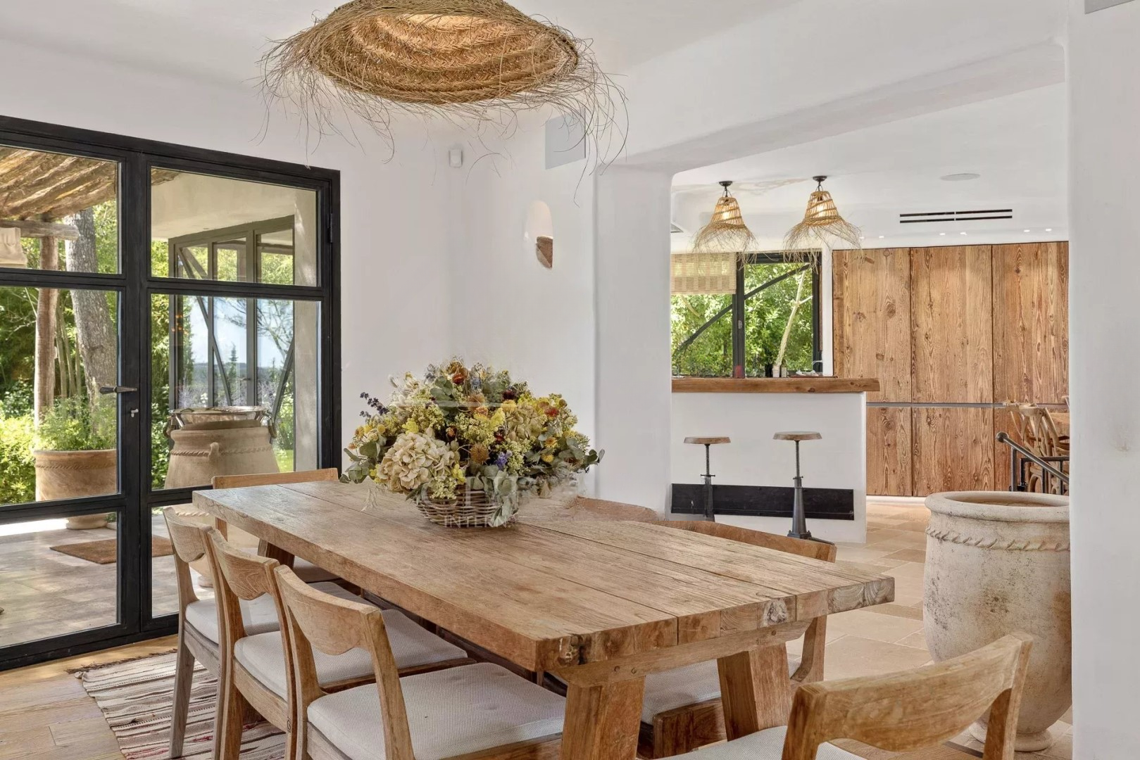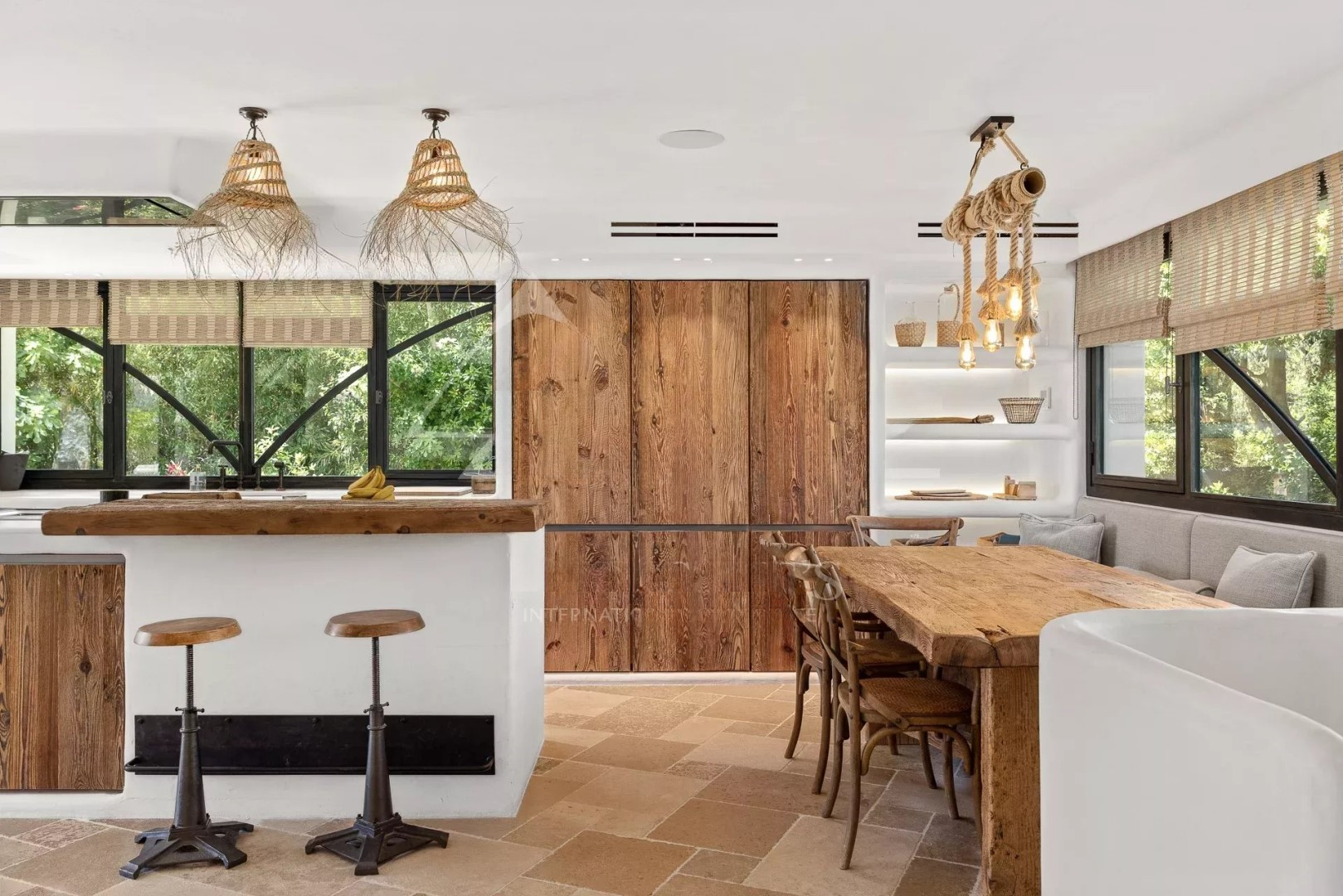 Расположенный в одном из самых эксклюзивных районов Mougins, в очень жилом комплексе с красивым видом на окружающие зеленые холмы. Этот замечательный дом недавно был полностью обновлён в тёплом и типичном средиземноморском стиле с белыми стенами, обработанными натуральными пигментами, каменными полами, деревянными панелями и неотёсанными паркетами.