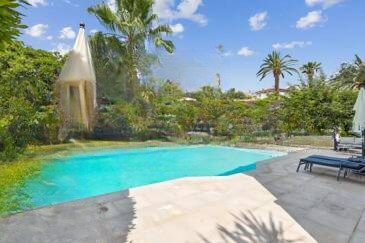 На улице обширный бассейн гармонично вписывается в средиземноморский ландшафт, укрытый от посторонних глаз. Несколько парковочных мест завершают это уникальное предложение.