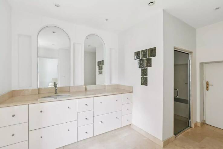 Основной дом площадью около 240 м² предлагает просторные помещения и высокие потолки. Здесь находятся 4 спальни, светлые гостиные, выходящие на террасы и сад, и редкое архитектурное очарование.
