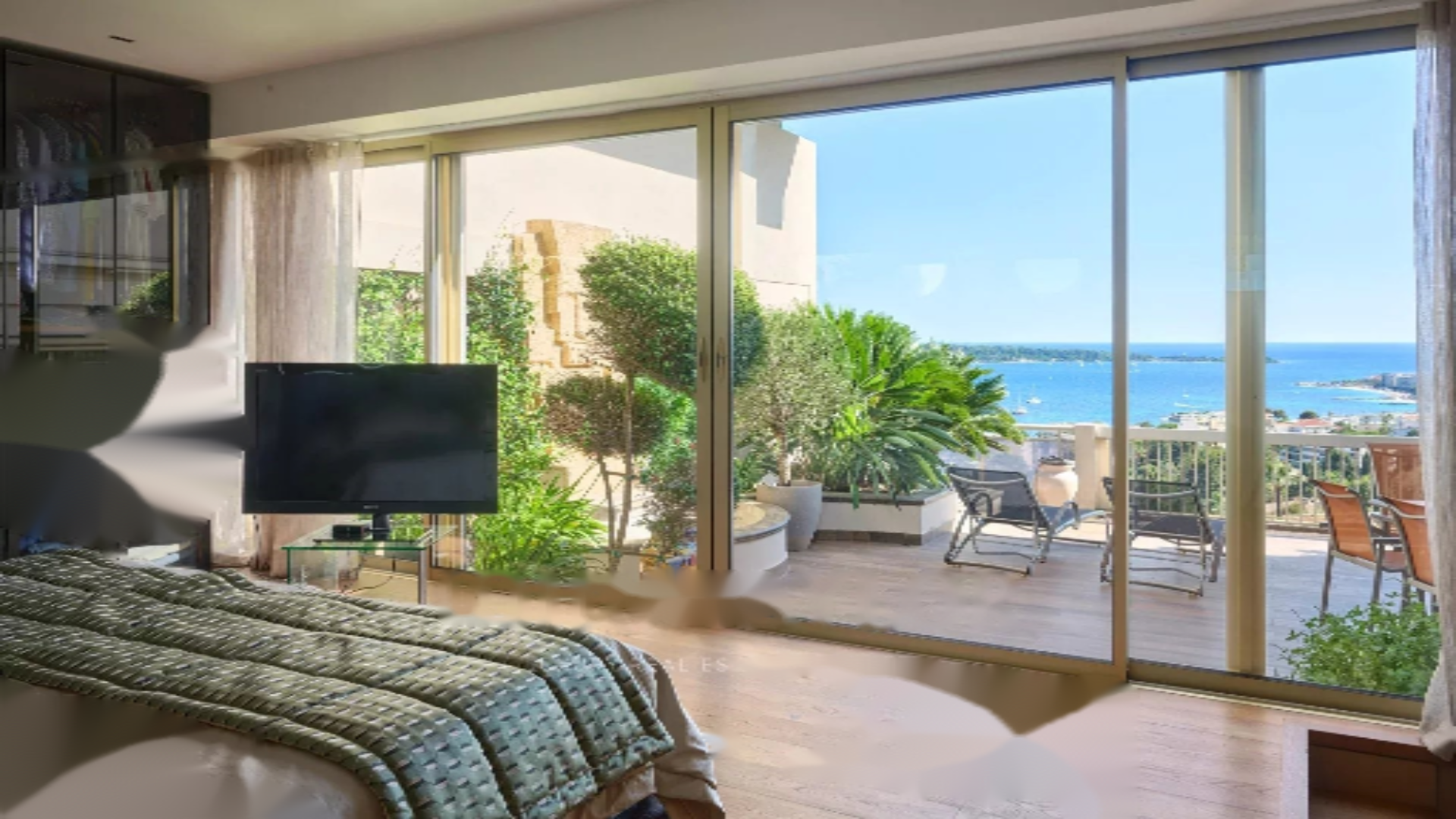 В элитной резиденции района Калифорния, великолепная квартира площадью около 189 м² с исключительной террасой в 99 м², предлагающей великолепный вид на море, острова Лерин и бухту Канн.