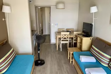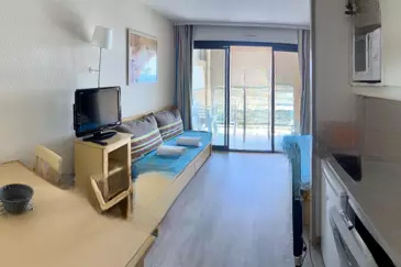 Прекрасная квартира Т2 включает в себя гостиную с двумя спальными местами и оборудованную кухню-нишу, отдельную спальню и террасу с панорамным видом на море.