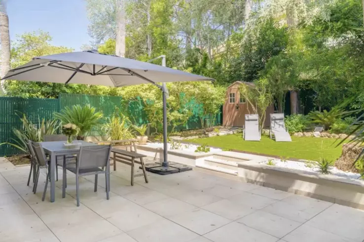 Это предложение расположено в районе Канн Монроз, в тихом жилом квартале рядом с магазинами. Здесь находится полностью отремонтированный садовый этаж площадью 74 кв. м.