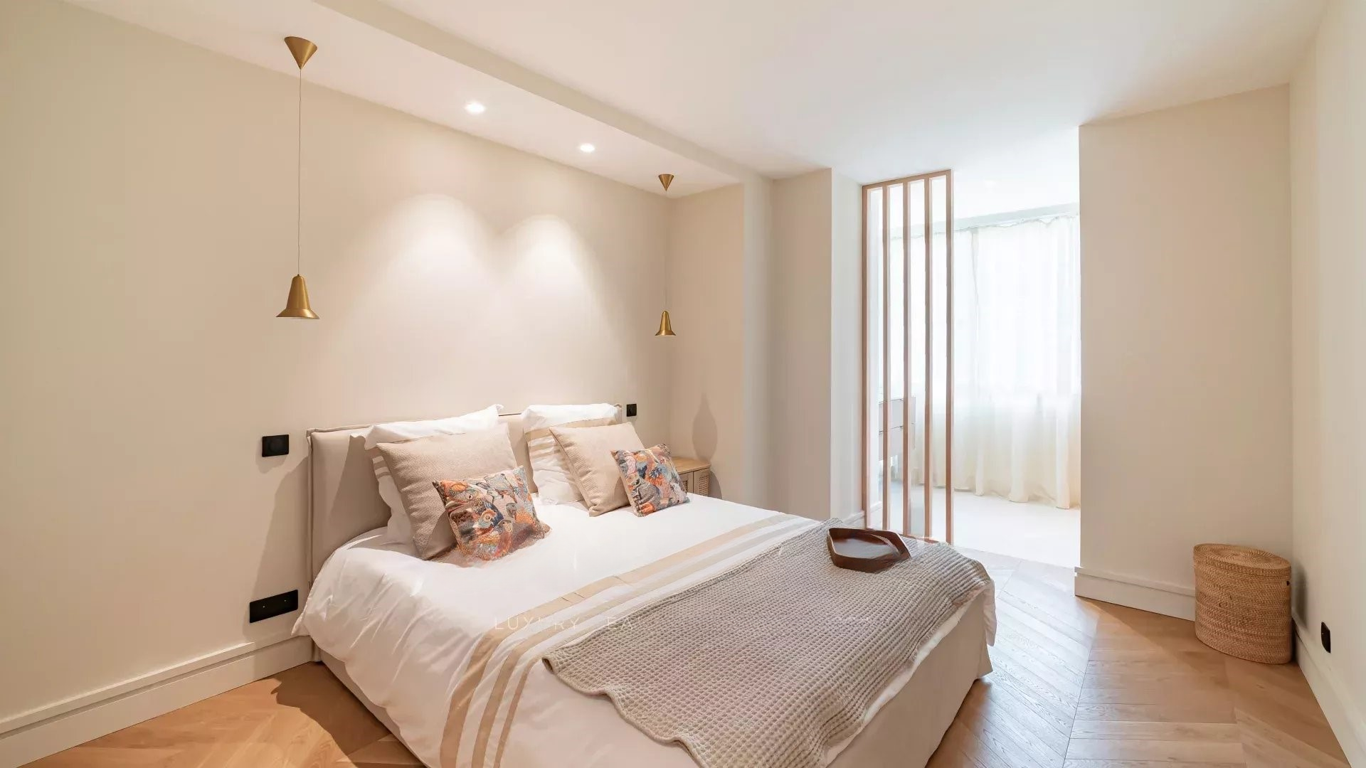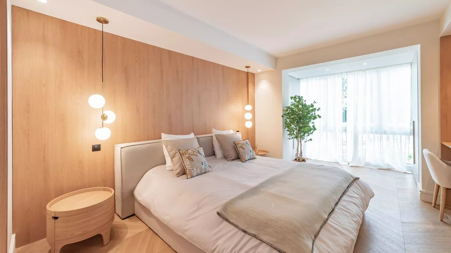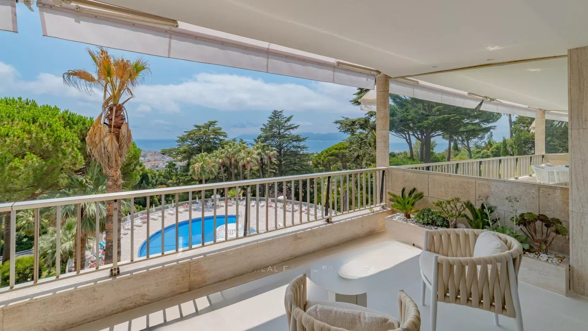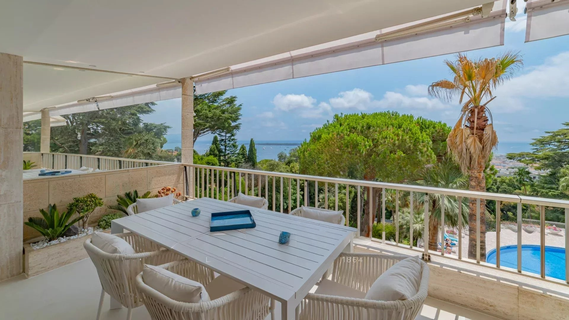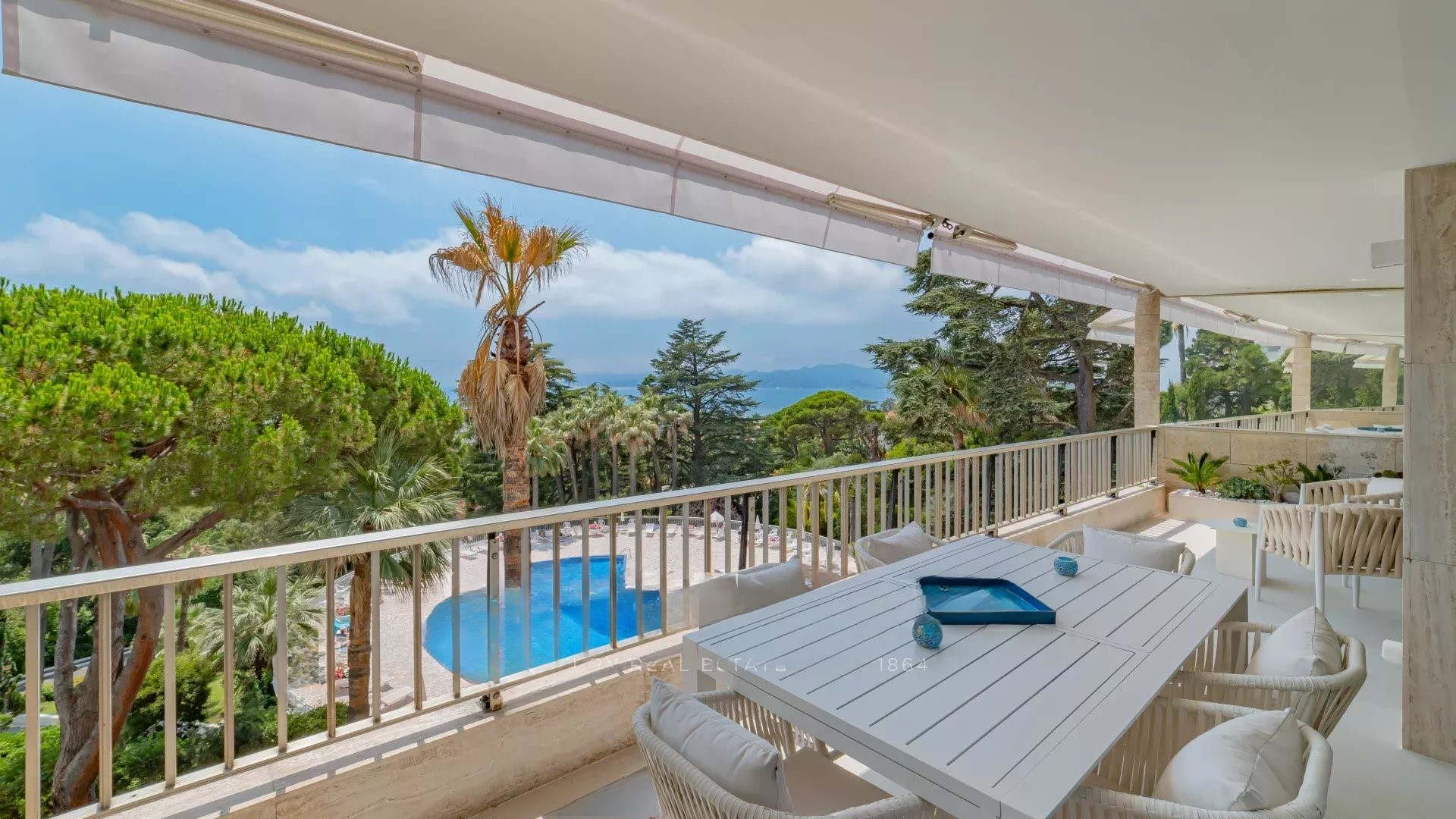 Просторная, светлая гостиная с выходом на террасу с видом на море и парк, полностью оборудованная открытая кухня, две спальни с ванными комнатами. Современный дизайн, тщательная отделка.
