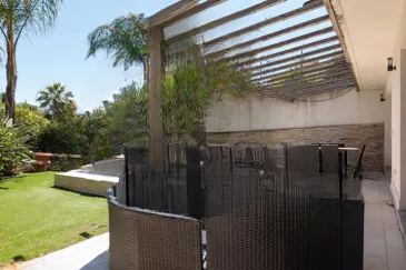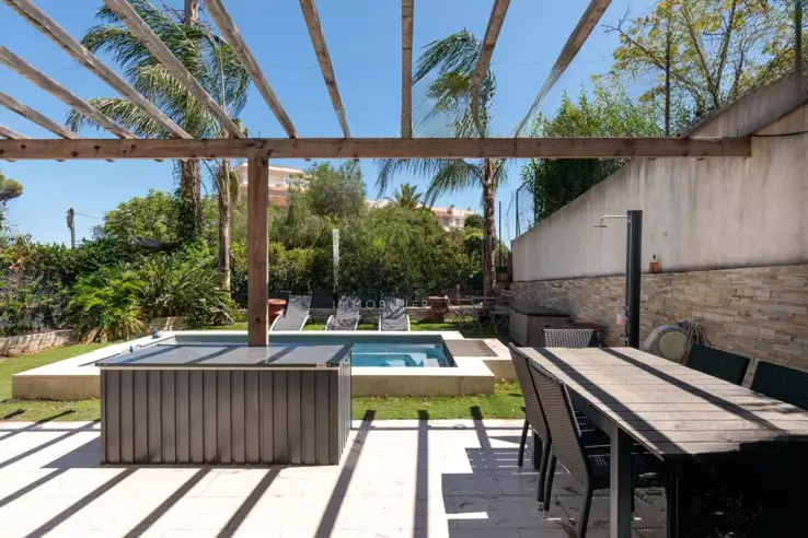 Снаружи: красивый сад с великолепным бассейном, ориентированным на юг. В дополнение - 3 приватных парковочных места.