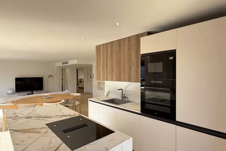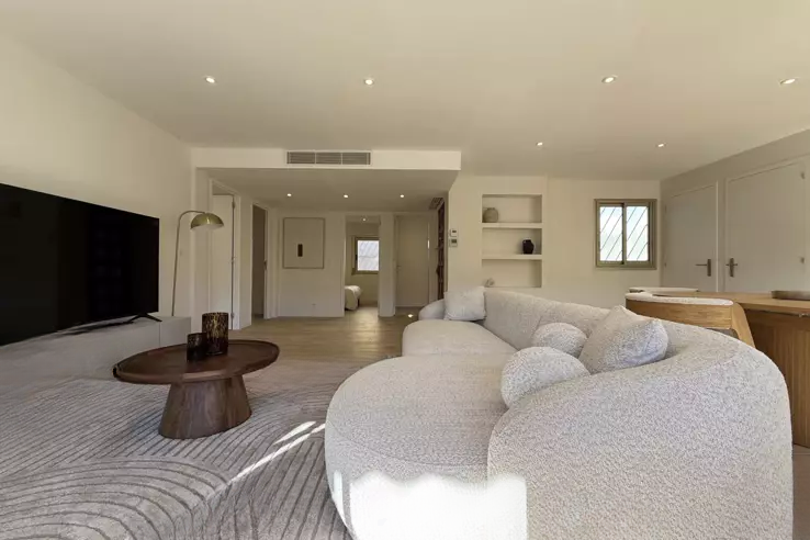 Расположенный на первом этаже и с отдельным входом, этот красивый четырехкомнатный апартамент площадью около 96 кв.м недавно был тщательно отремонтирован. Просторный и светлый, он включает в себя прихожую, большую гостиную с оборудованной кухней, три спальни, две ванные комнаты и отдельный туалет.
