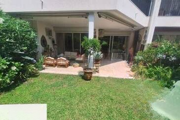 Апартамент — это просторный тихий 3-комнатный объект на первом этаже с собственным садом и двумя террасами. Он обладает светлой гостиной, двумя большими спальнями с ванными комнатами, многочисленными местами для хранения и гостевым туалетом. Включены два охраняемых парковочных места в подземном паркинге и большая кладовая.