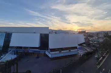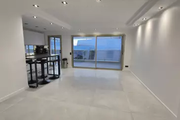 Терраса площадью 12 м² продолжает гостиную, выходящую на сторону моря/Дворца. Урбанистическая утонченность с завораживающим видом.