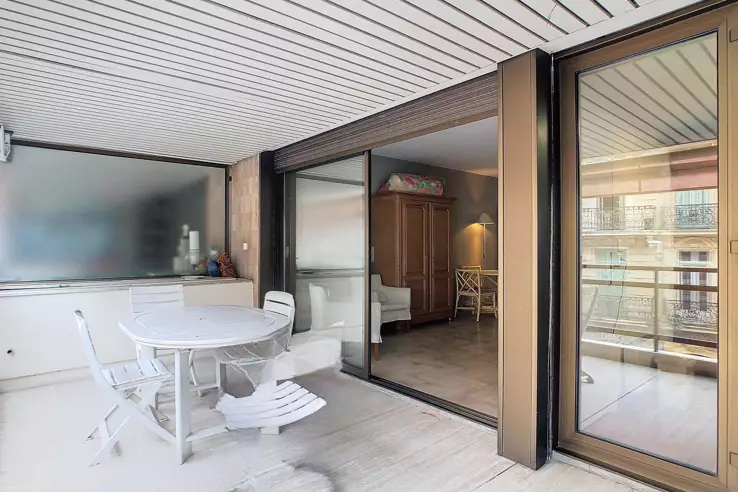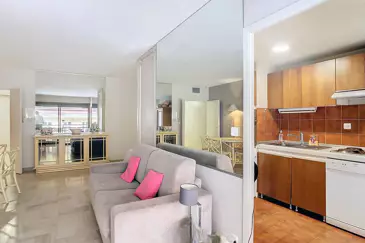 Расположенный между Круазетт и улицей Антиб, в жилом комплексе с круглосуточной охраной, просторный студио-альков площадью 48 м² включает: прихожую, гостиную, кухню, спальную зону, ванную комнату, гостевые туалеты и террасу.