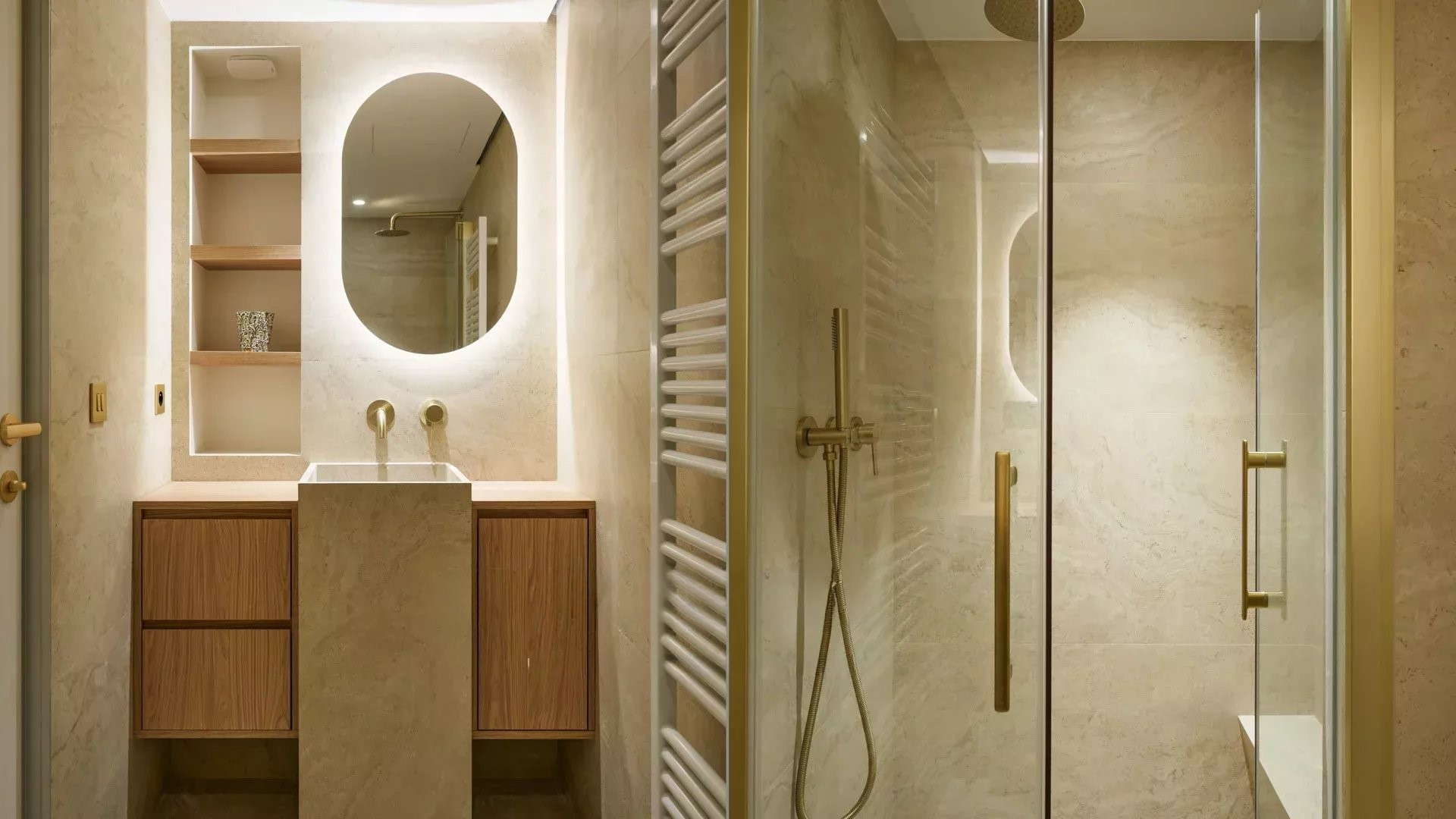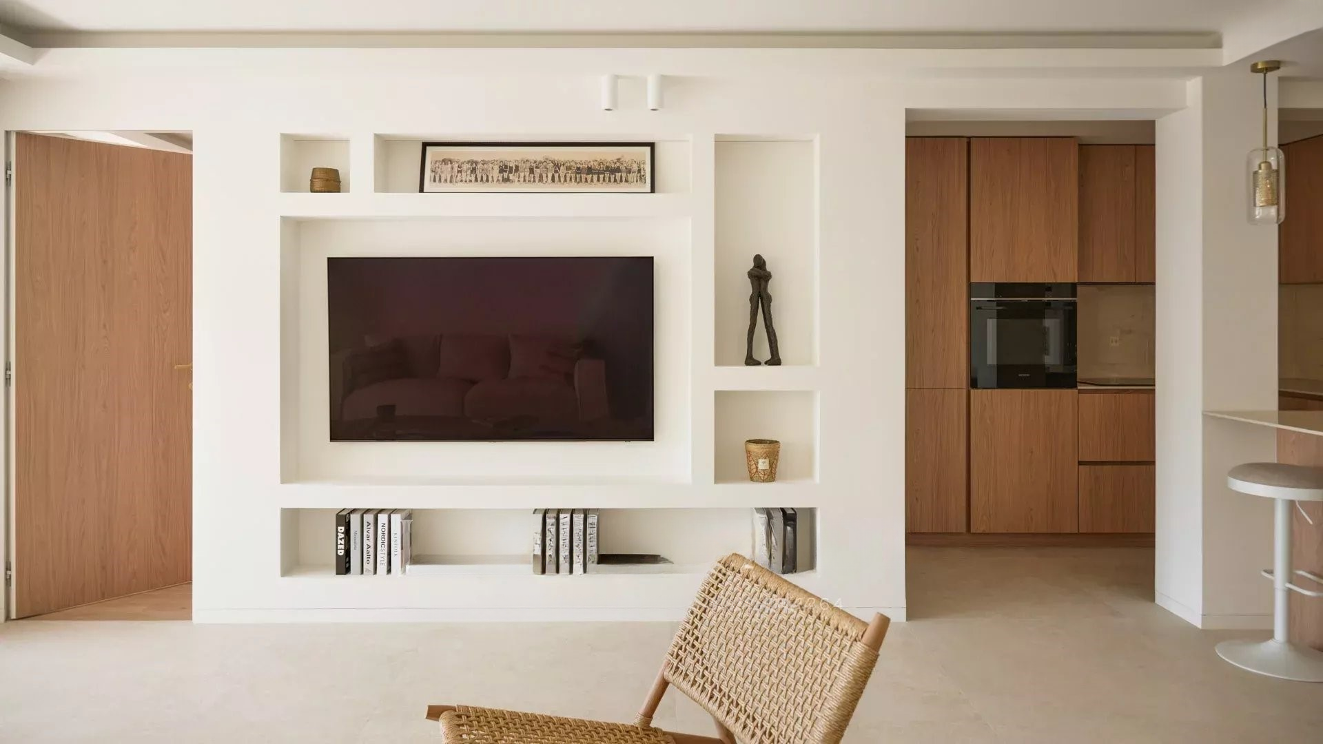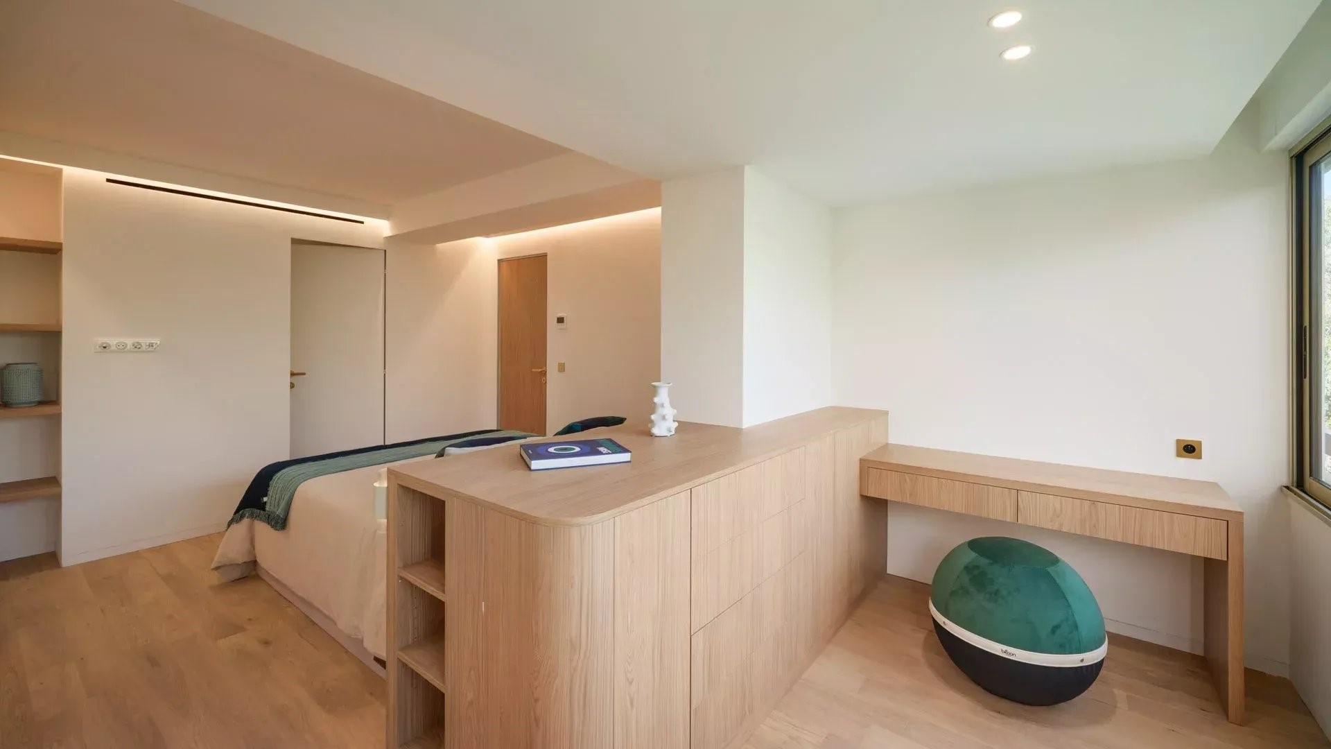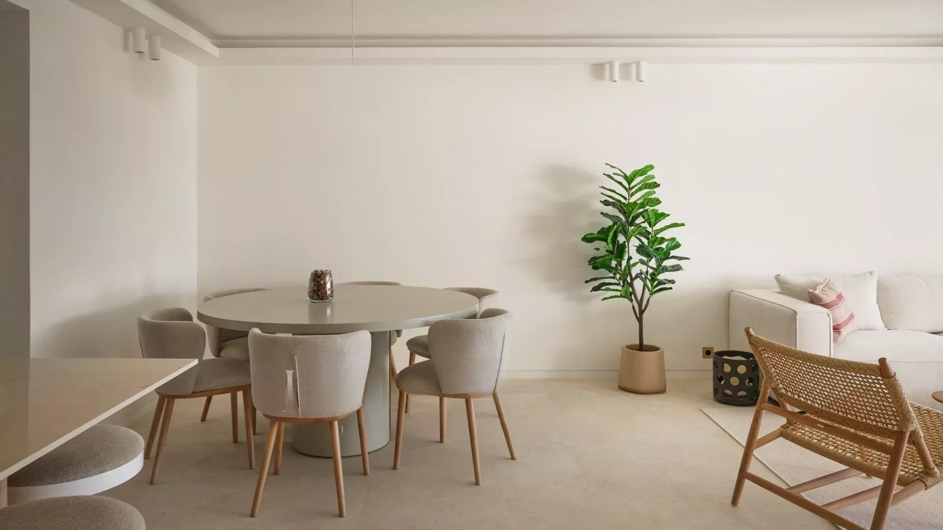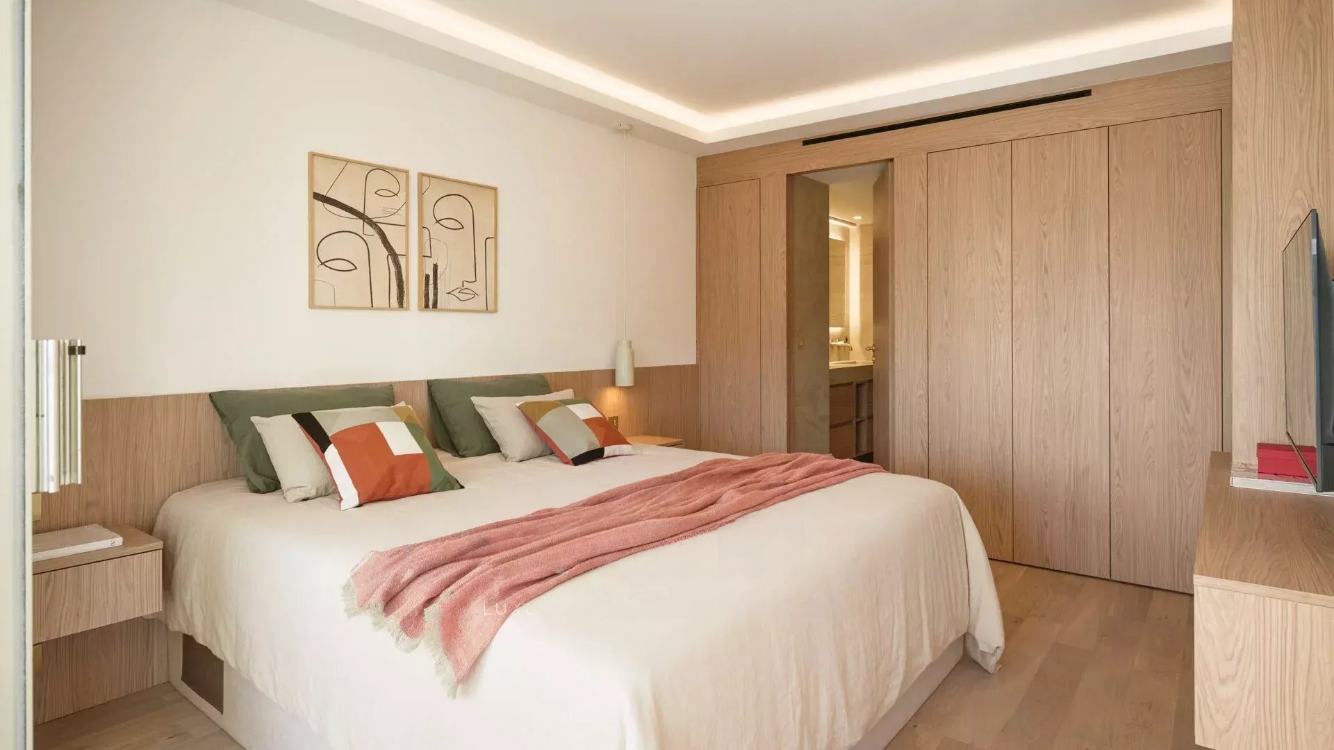 Площадь квартиры составляет около 100 м² и включает большую террасу около 20 м² с южной экспозицией, гостиную с открытой кухней, три спальни с ванными комнатами и гардеробными.