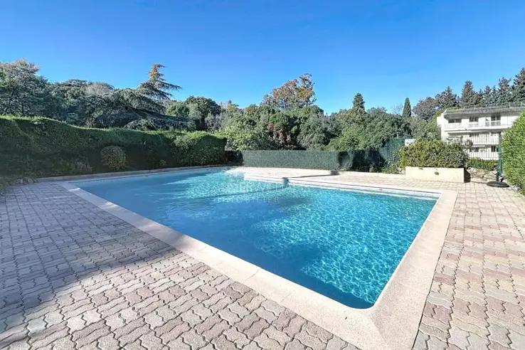 Ваша квартира под предложением — уютная квартира с 2 комнатами площадью 47 м² в нескольких шагах от всех удобств и транспорта, в приятной охраняемой резиденции с бассейном, на краю лесного парка Croix des Gardes.