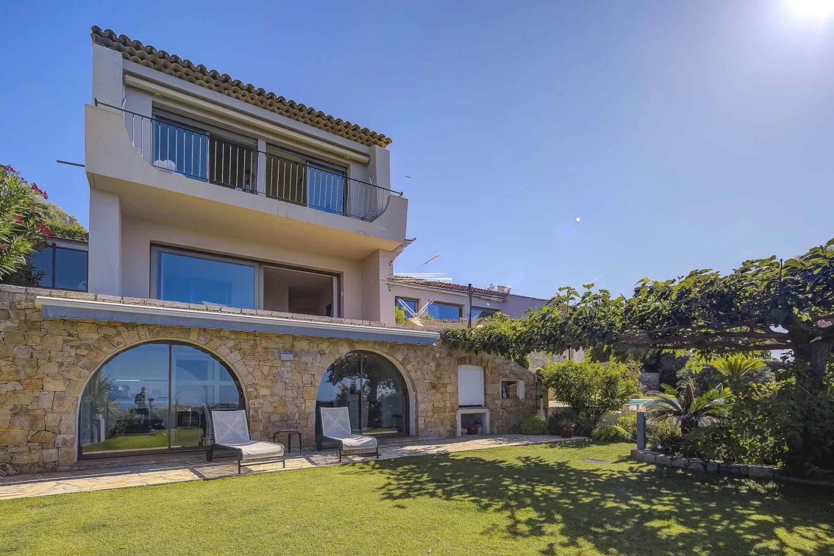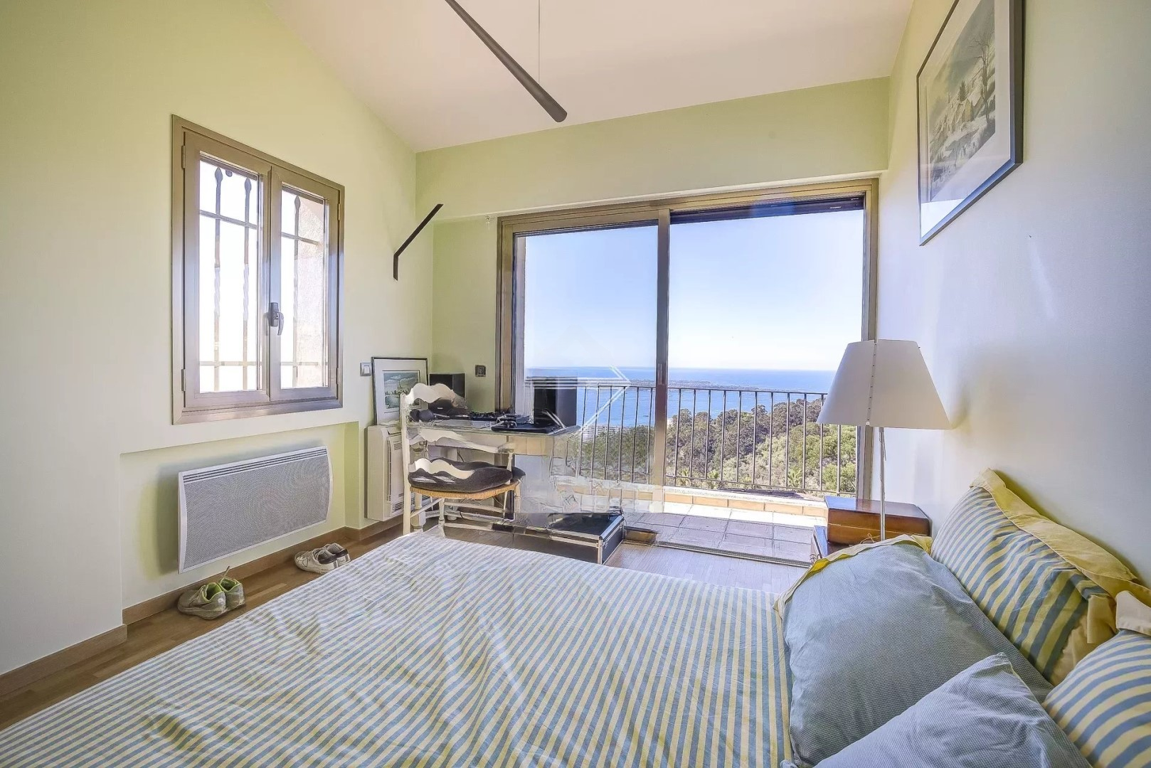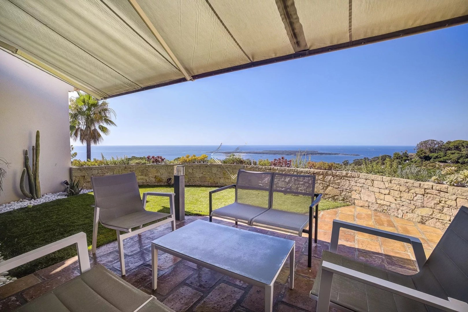 Благодаря южной экспозиции, собственность предлагает захватывающий панорамный вид на Средиземное море и острова Лерин.