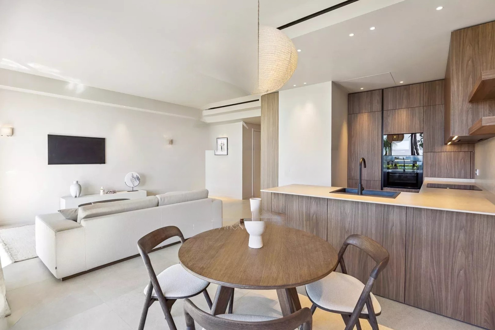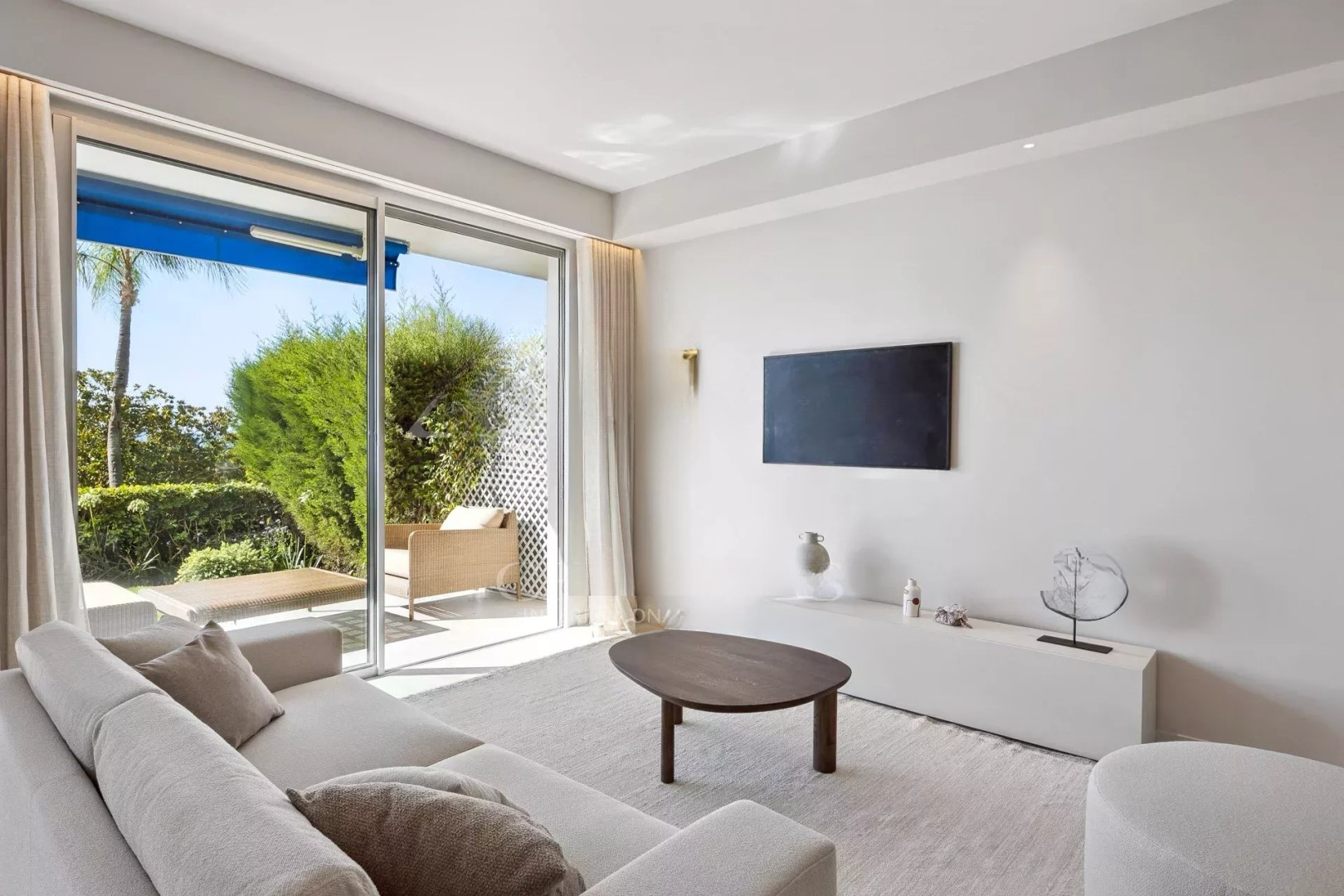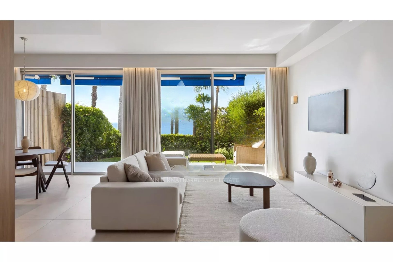 Квартира может похвастаться великолепным видом на море и приватным садом, обеспечивающим редкую уединенность без посторонних взглядов. Зал, наполненный светом, плавно переходит в современную полностью оборудованную открытую кухню с центральным островом, идеально подходящим для приема гостей.