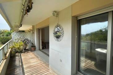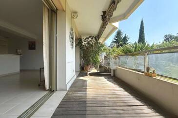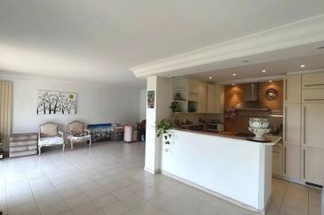 Площадью около 80 м², она предлагает просторную светлую гостиную с полуоткрытой кухней, создавая уютное пространство, которое продолжается на большую террасу площадью около 15 м². Она возвышается над великолепным ухоженным садом, являющимся настоящим оазисом для наслаждения тишиной.