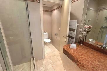 Спальная зона состоит из двух комфортных комнат, включая родительскую спальню с собственной ванной комнатой (двойной умывальник, ванна, туалет), а также вторую отдельную душевую с туалетом.