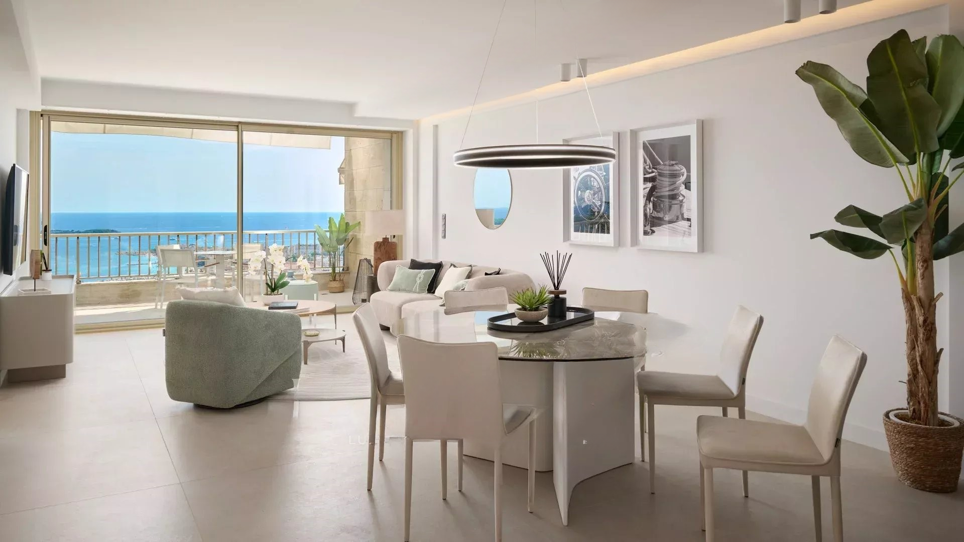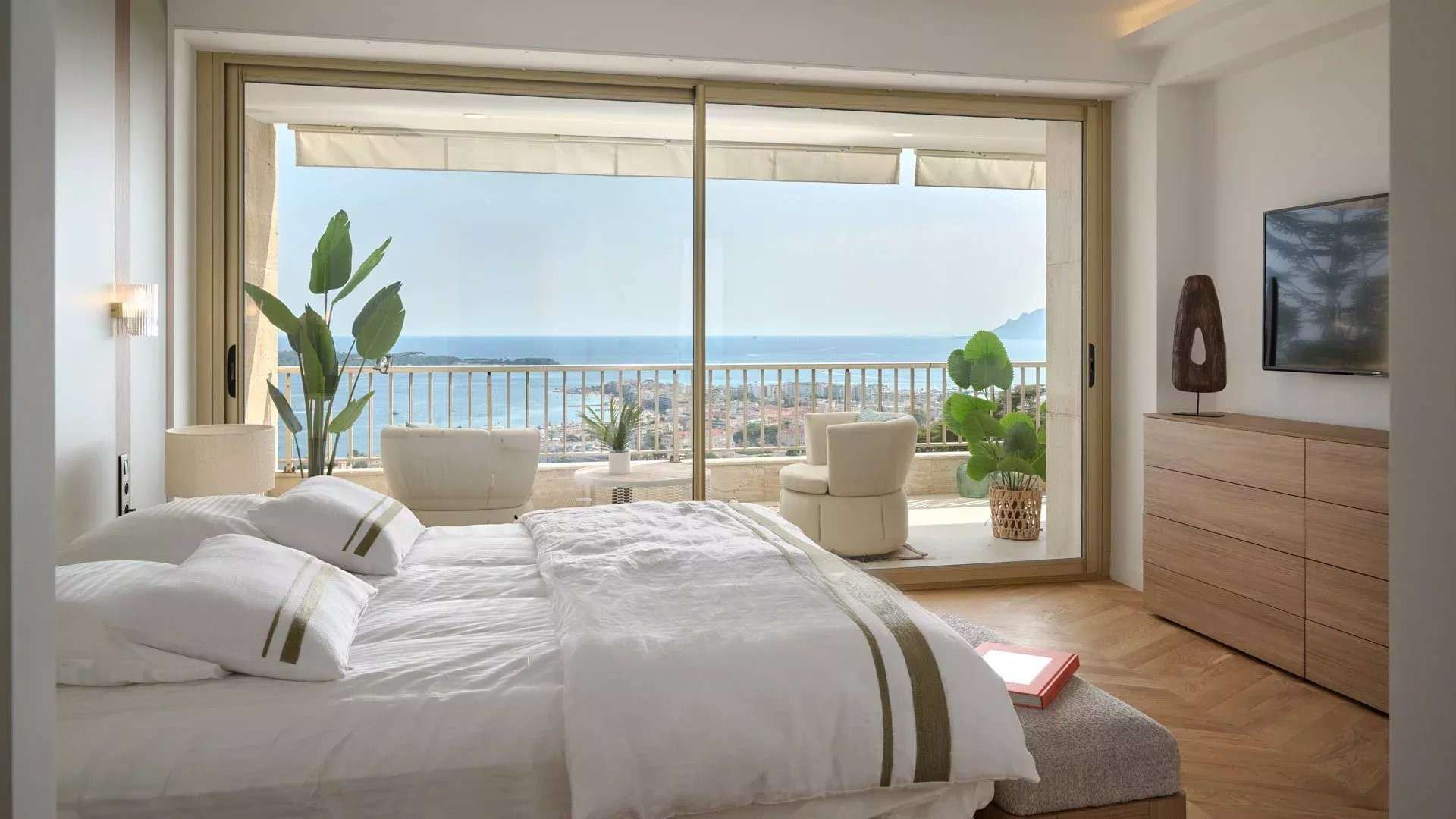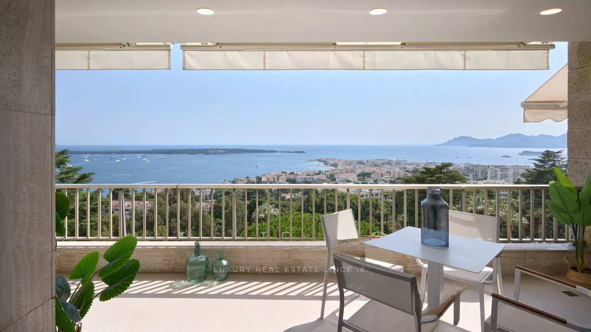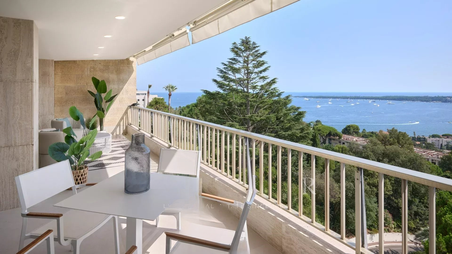 Эта великолепная квартира с 4 комнатами на высоком этаже предлагает великолепный вид на море, острова Лерин и массив Эстерель.