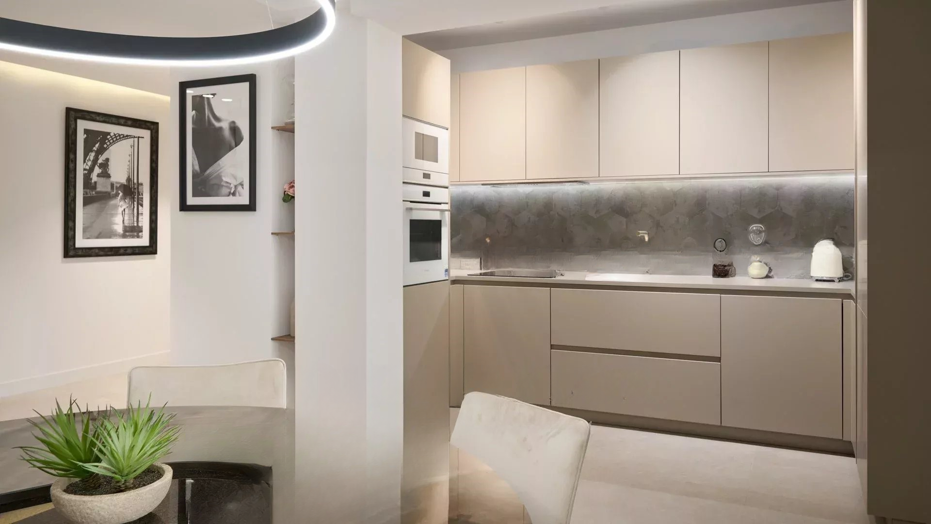 С жилой площадью 117 м² (106,12 м² по закону Carrez), она включает гостиную с открытой кухней, 3 спальни с ванными и глубокую террасу на южной стороне площадью 27 м².