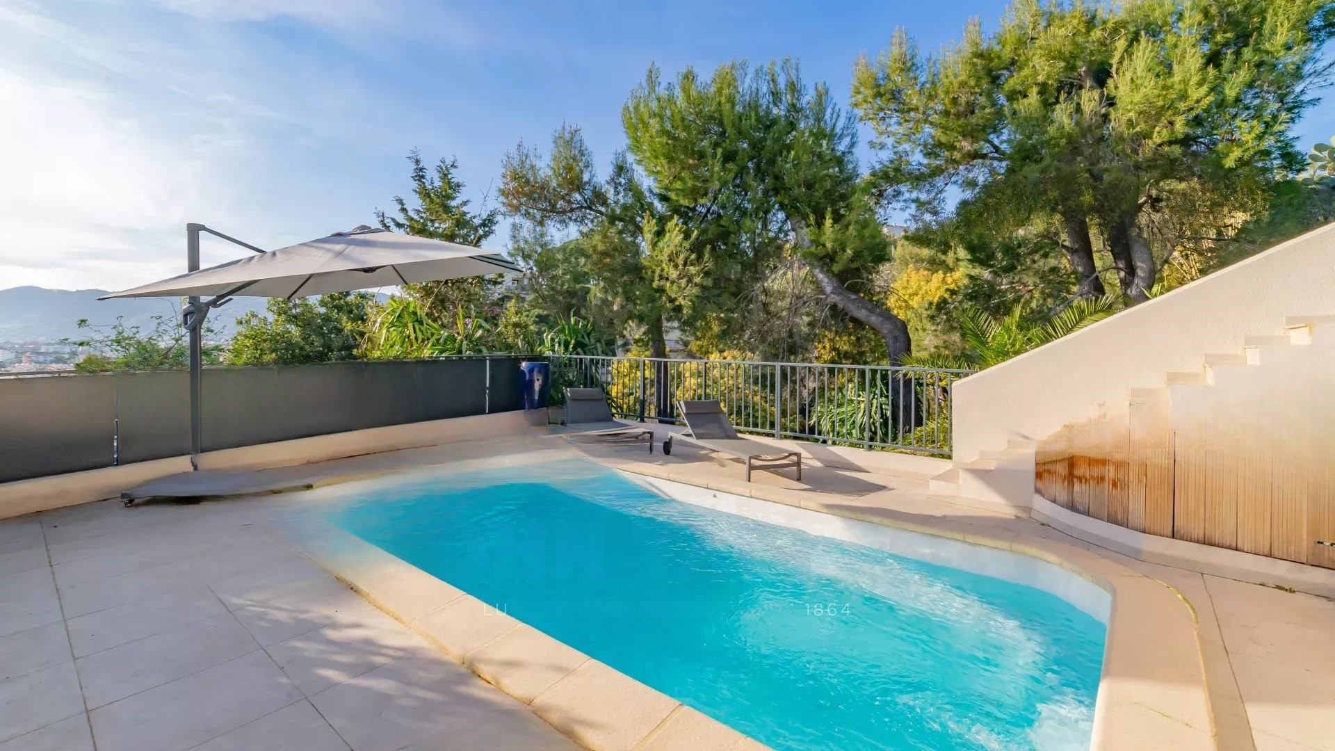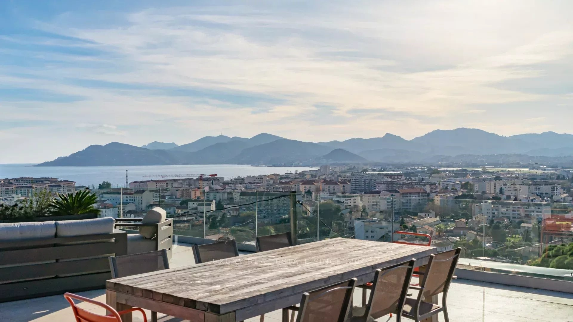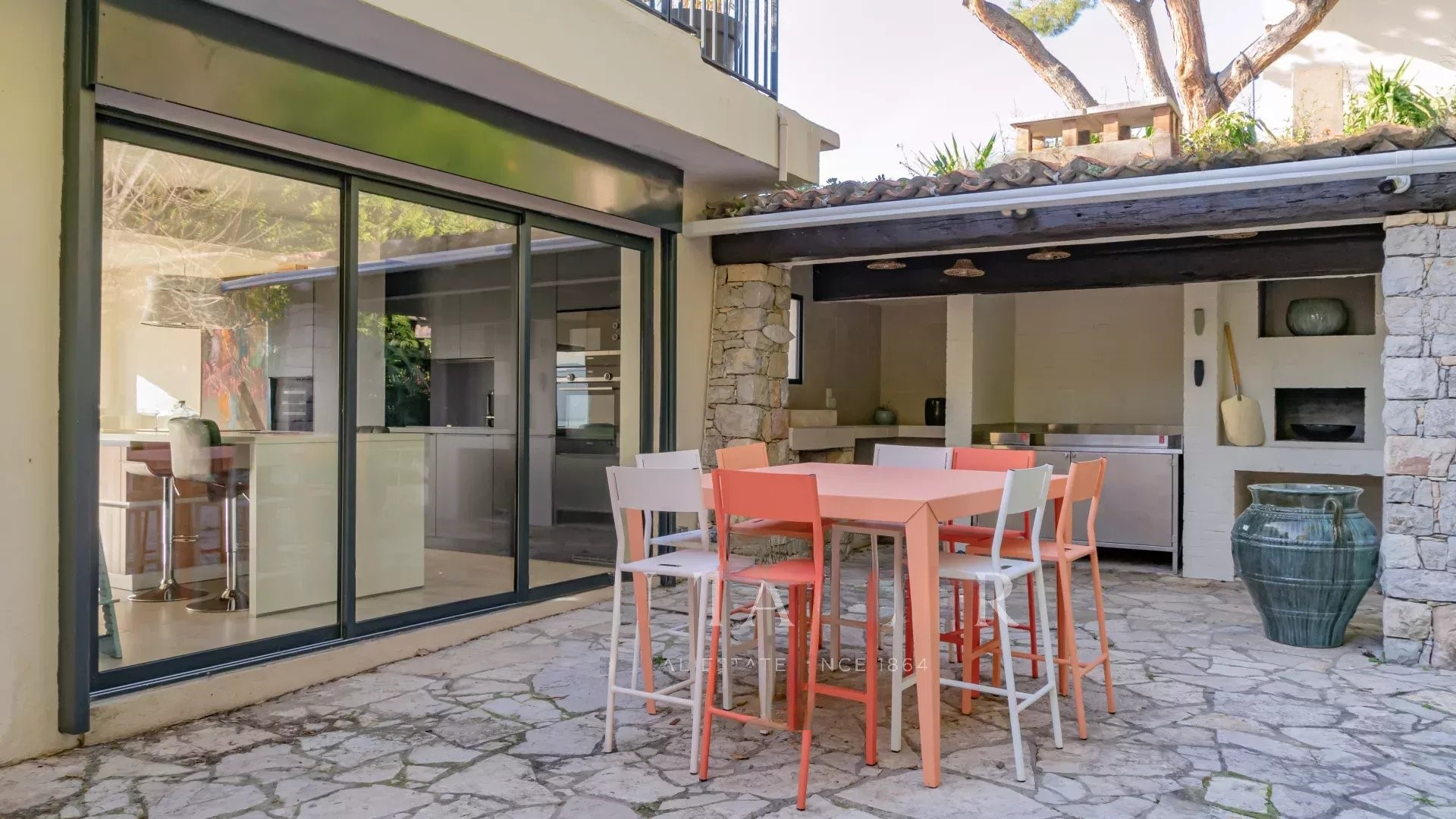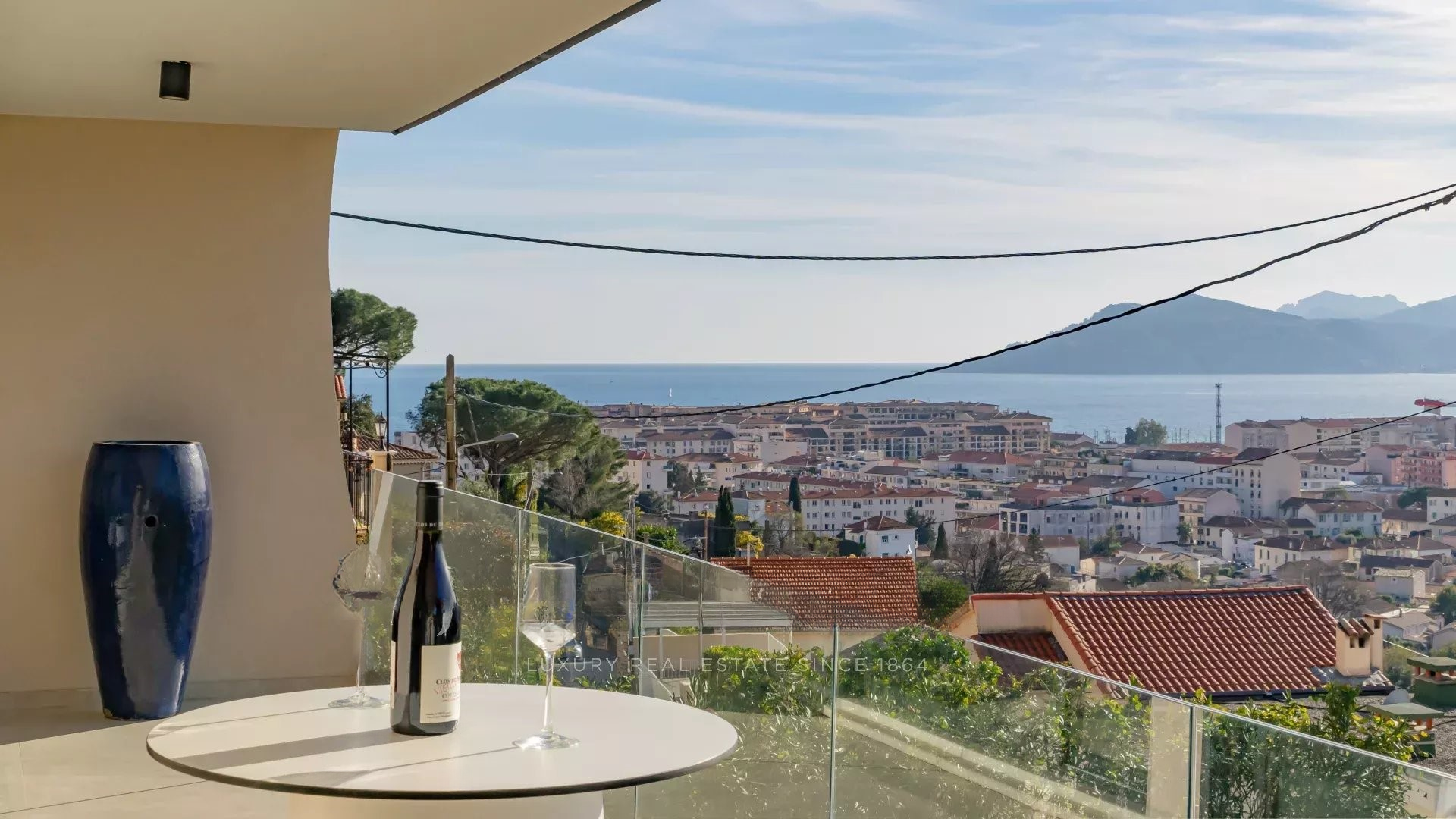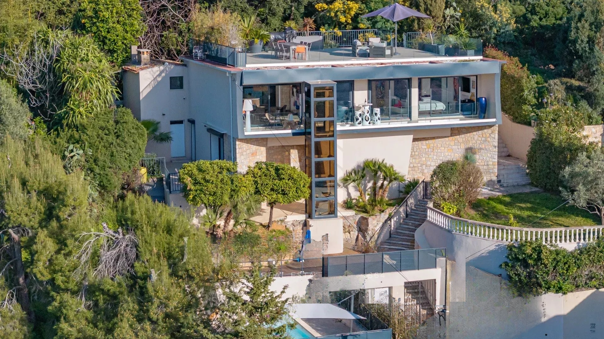 Современная вилла с террасой на крыше, полностью отремонтированная и предлагающая панорамный вид на море, Эстерель и Таннерон.