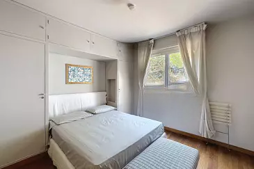 Сочетая в себе шарм и современность, апартамент имеет террасу. Он включает две большие тихие спальни, оборудованную кухню с подсобным помещением, а также две ванные комнаты с туалетом. Высокие потолки, свет с улицы и множество мест для хранения добавляют комфорта и характера.