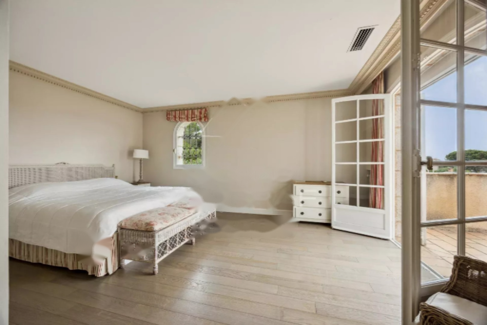 На верхнем этаже находится истинно частное семейное пространство: здесь располагается телевизионная комната на меццанине, предлагающая зону отдыха или кабинет по мере необходимости, а также четыре комфортные спальни с душевыми, плюс мастер-сьют с собственной ванной комнатой и гардеробной.