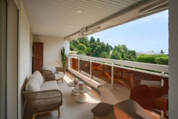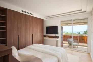 ✨ Великолепная квартира на 135 м² с непревзойденным видом на море и залив Канн, расположена на верхнем этаже престижной резиденции в районе бас-Калифорни. Квартира включает гостиную с кухней, мастер-спальню с видом на море и три спальни с ванными комнатами.
