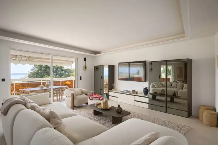 Великолепная квартира площадью 135 кв. м, предлагающая завораживающий вид на море и бухту Канн, расположена на последнем этаже престижной резиденции в районе нижней Калифорнии.