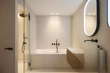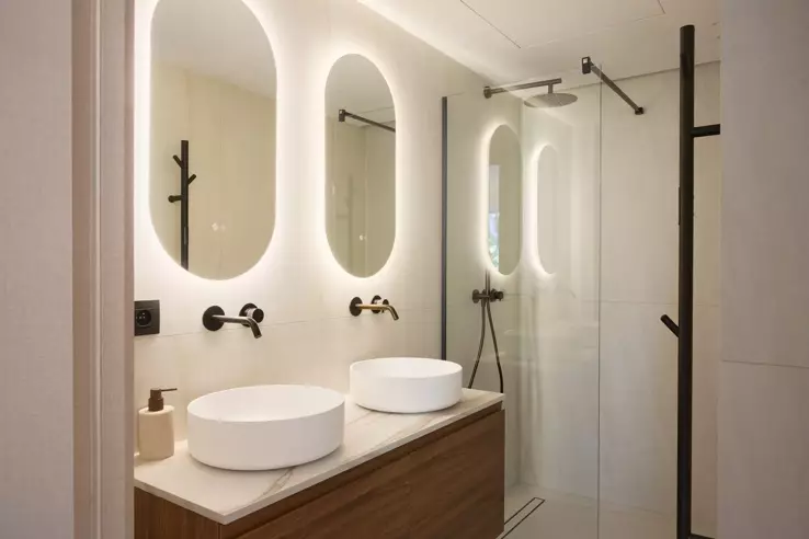Квартира состоит из гостиной с кухней, основной спальни с видом на море и трех спален с индивидуальными ванными комнатами.